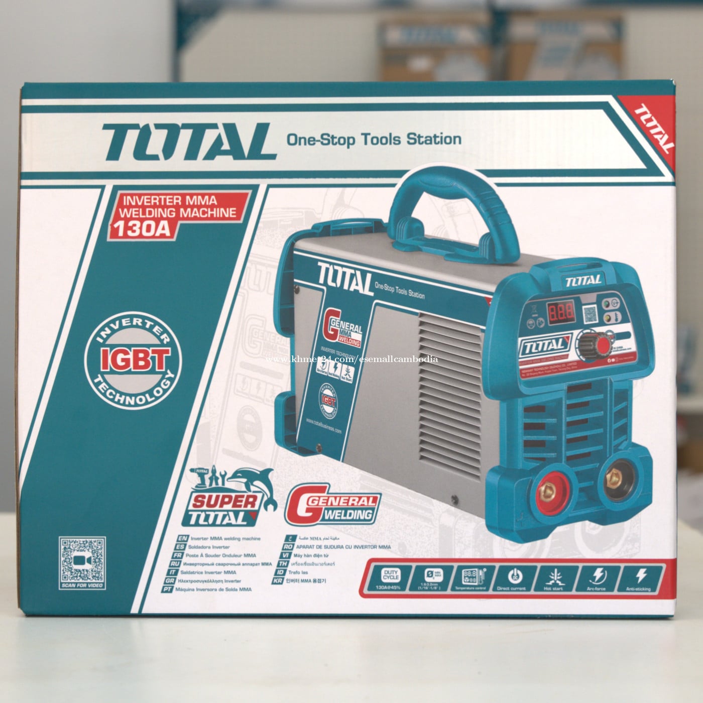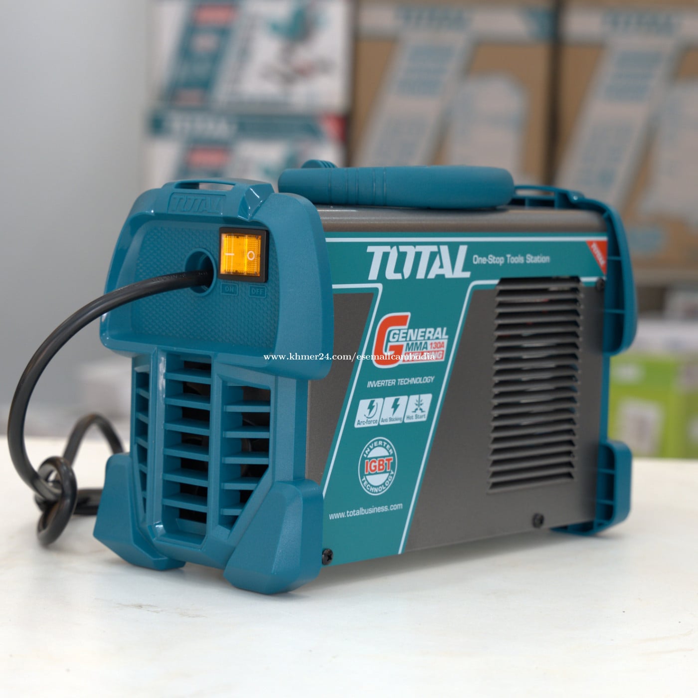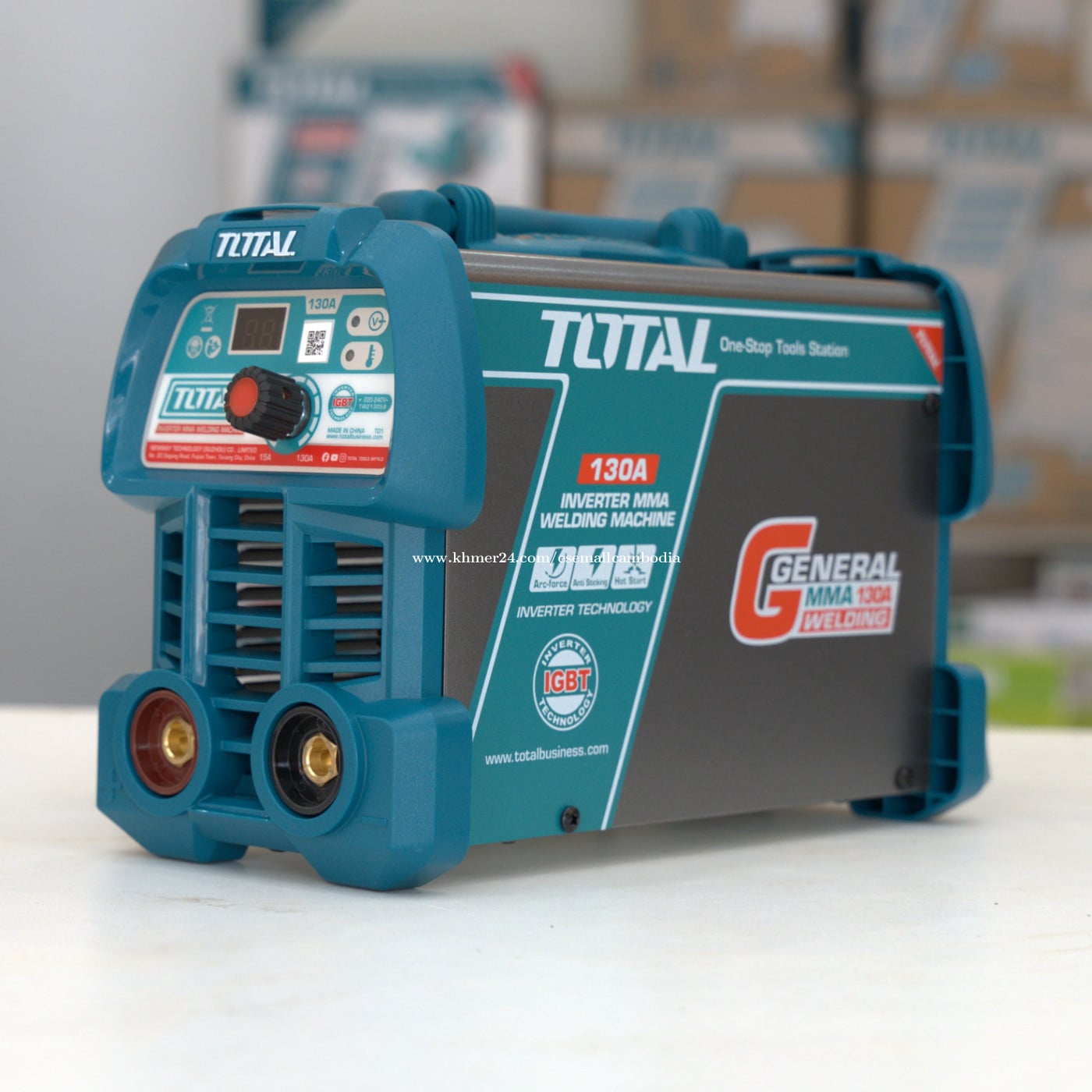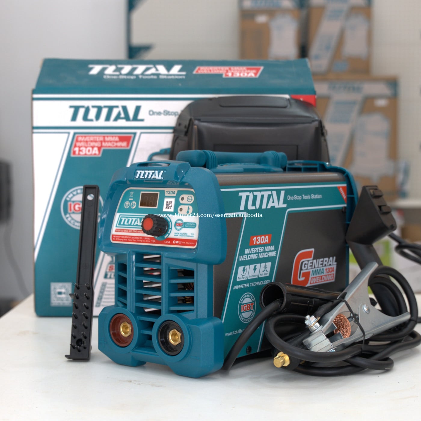 TOTAL Inverter MMA Welding Machine 130A (IGBT) (TW213059) តម្លៃ៖ $91.00 សភាព៖ ថ្មី 100% ប្រភេទ៖ ម៉ាស៊ីនផ្សារ / Welding Machine ម៉ាក៖ TOTAL ម៉ូដែល៖ Inverter MMA 130A ពណ៌នាផលិតផល TOTAL Inverter MMA Welding Machine 130A គឺជាម៉ាស៊ីនផ្សារដែកប្រភេទ Inverter ប្រើបច្ចេកវិទ្យា IGBT មានទំហំតូច កម្លាំងខ្លាំង និងស្ថេរភាពល្អ។ សាកសមសម្រាប់ការផ្សារដែកទូទៅ ការងាររោងជាង និងការងារសំណង់។ រចនាមានដងកាន់ ងាយដឹក ងាយប្រើ និងសន្សំថាមពល។ លក្ខណៈបច្ចេកទេស (Specifications) ប្រភេទ៖ Inverter MMA Welding Machine ចរន្តអតិបរមា៖ 130A បច្ចេកវិទ្យា៖ IGBT Inverter វ៉ុលភ្លើង៖ 220–240V ~ 50/60Hz ប្រភេទចរន្ត៖ DC Duty Cycle៖ 130A @ 45% មុខងារ៖ Hot Start / Arc Force / Anti-Sticking ប្រភេទប្រើប្រាស់៖ Electric (ខ្សែភ្លើង) កម្រិតប្រើប្រាស់៖ General / Industrial ពណ៌៖ ខៀវ / ប្រផេះ (TOTAL Design) អត្ថប្រយោជន៍ បច្ចេកវិទ្យា IGBT កម្លាំងស្ថេរភាពខ្ពស់ ទំហំតូច ទម្ងន់ស្រាល ងាយដឹកជញ្ជូន ផ្សារងាយ ចាប់អ័ក្សល្អ (Hot Start) ការពារដែកជាប់ (Anti-Sticking) សន្សំថាមពល និងប្រើបានយូរ សាកសមសម្រាប់ ការងារផ្សារដែកទូទៅ រោងជាង និងការងារសំណង់ ការងារថែទាំ និងជួសជុល អ្នកជាង និងអ្នកប្រើប្រាស់វិជ្ជាជីវៈ