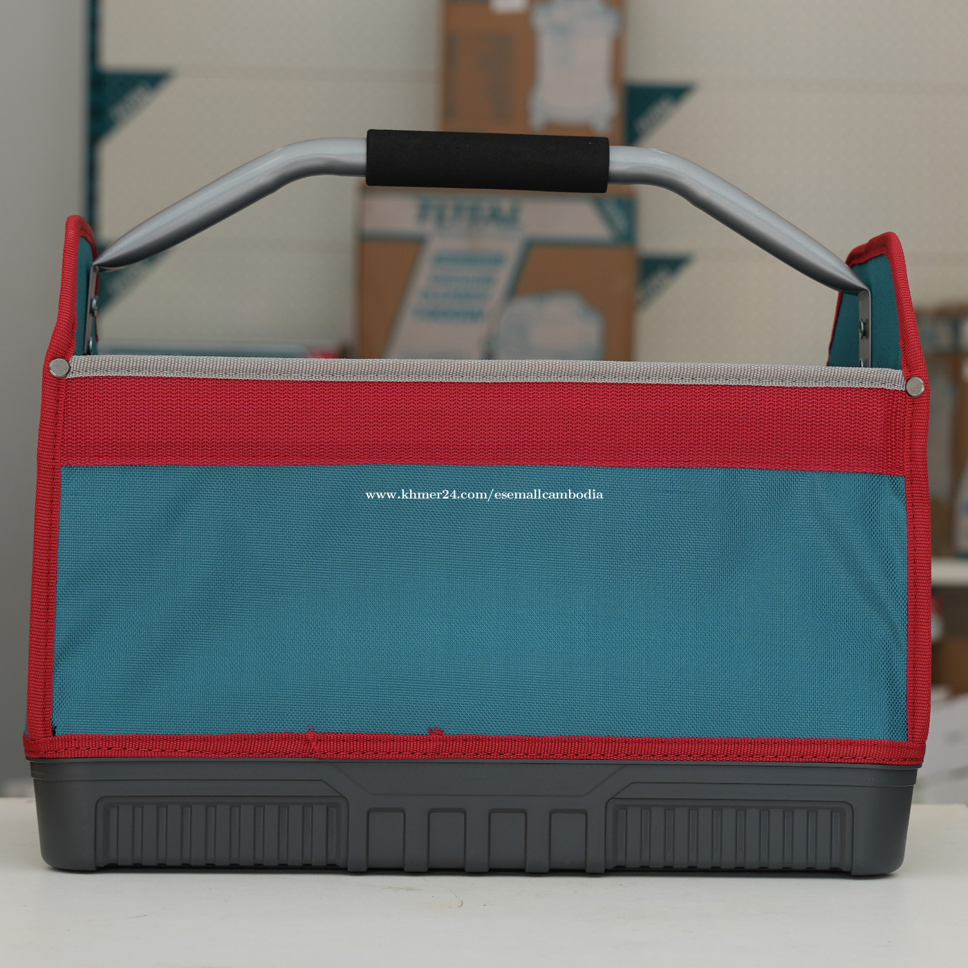 TOTAL Tools Bag 16" (Super Total) (THT36L03) ប្រភេទផលិតផល: កាបូបដាក់ឧបករណ៍ ម៉ាក: TOTAL ទំហំ: 16 អ៊ីញ ពណ៌នាផលិតផល កាបូបដាក់ឧបករណ៍ TOTAL 16" ត្រូវបានរចនាឡើងសម្រាប់អ្នកជាង និងអ្នកប្រើប្រាស់ទូទៅ ដែលត្រូវការកាបូបរឹងមាំ សមស្របសម្រាប់ផ្ទុក និងដឹកជញ្ជូនឧបករណ៍ជាច្រើនប្រភេទ។ ផលិតពីសម្ភារៈក្រណាត់គុណភាពខ្ពស់ រឹងមាំ មិនងាយបែក ឬរហែក ហើយមានបាតប្លាស្ទិករឹងជួយការពារកាបូបពីសំណើម និងការខូចខាតពេលដាក់លើដី។ លក្ខណៈពិសេស សម្ភារៈក្រណាត់គុណភាពខ្ពស់ រឹងមាំ ប្រើបានយូរ បាតប្លាស្ទិករឹង ការពារទឹក និងការពាក់ព័ន្ធនឹងដី មានហោប៉ៅច្រើន សម្រាប់រៀបចំឧបករណ៍បានងាយស្រួល ដងកាន់ដែករឹងមាំ មានកៅស៊ូបំពាក់ ងាយកាន់ មិនឈឺដៃ រចនាបែបវិជ្ជាជីវៈ សាកសមសម្រាប់ការងារសំណង់ អគ្គិសនី និងជួសជុលទូទៅ ការប្រើប្រាស់ សមស្របសម្រាប់ដាក់ឧបករណ៍ដៃ ឧបករណ៍ជួសជុល និងសម្ភារៈការងារផ្សេងៗ សម្រាប់អ្នកជាង និងការប្រើប្រាស់ប្រចាំថ្ងៃ។