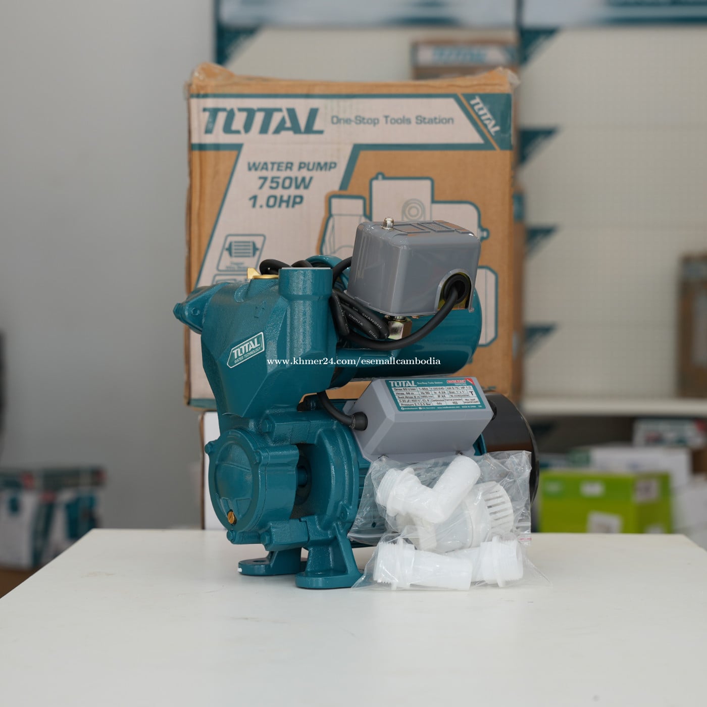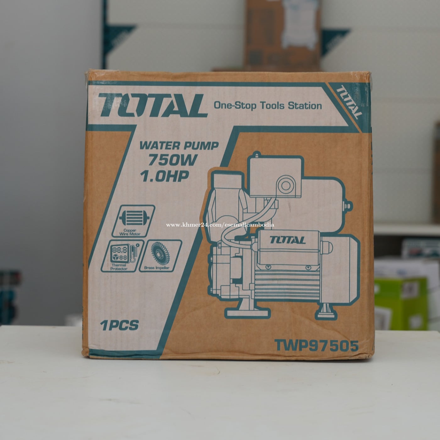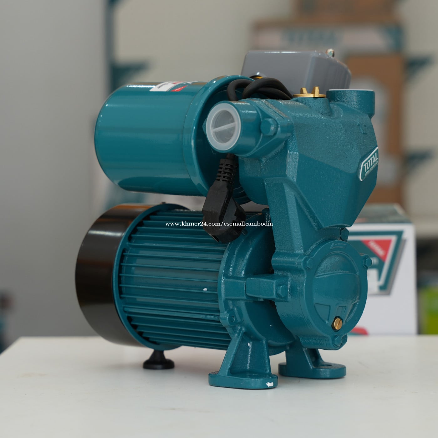 TOTAL Water Pump 750W 1.0HP (Industrial) (TWP97505) តម្លៃ៖ $108.00 សភាព៖ ថ្មី 100% ប្រភេទ៖ ម៉ាស៊ីនបូមទឹក / Water Pump ម៉ាក៖ TOTAL ម៉ូដែល៖ TWP97505 ពណ៌នាផលិតផល TOTAL Water Pump 750W 1.0HP គឺជាម៉ាស៊ីនបូមទឹកប្រភេទ Electric ដែលមានកម្លាំងខ្លាំង និងប្រសិទ្ធភាពខ្ពស់ សាកសមសម្រាប់ការបូមទឹកប្រើប្រាស់ប្រចាំថ្ងៃ និងការងារឧស្សាហកម្មតូច–មធ្យម។ ម៉ូទ័រកម្លាំង 750W (1.0HP) ផ្តល់សមត្ថភាពបូមទឹកបានល្អ មានស្ថេរភាព និងប្រើប្រាស់បានយូរ។ រចនាផលិតពីសម្ភារៈរឹងមាំ ជាមួយ Copper Wire Motor និង Brass Impeller ធានាគុណភាព និងអាយុកាលវែង។ លក្ខណៈបច្ចេកទេស (Specifications) ប្រភេទ៖ Water Pump ថាមពលម៉ូទ័រ៖ 750W / 1.0HP ប្រភេទប្រើប្រាស់៖ Electric (ខ្សែភ្លើង) ប្រភេទការងារ៖ Industrial ម៉ូទ័រ៖ Copper Wire Motor Impeller៖ Brass Impeller ប្រព័ន្ធការពារ៖ Thermal Protector ការប្រើប្រាស់៖ បូមទឹកស្អាត ពណ៌៖ ខៀវ (TOTAL Design) អត្ថប្រយោជន៍ ម៉ូទ័រកម្លាំងខ្លាំង 750W (1.0HP) បូមទឹកបានល្អ និងមានស្ថេរភាព Copper Wire Motor ប្រើបានយូរ Brass Impeller រឹងមាំ មិនងាយពុក មាន Thermal Protector សុវត្ថិភាពខ្ពស់ រចនារឹងមាំ ងាយដំឡើង និងថែទាំ សាកសមសម្រាប់ បូមទឹកប្រើប្រាស់ក្នុងផ្ទះ សួនច្បារ និងកសិកម្មតូច អគារ និងរោងជាង អ្នកជាង និងអ្នកប្រើប្រាស់វិជ្ជាជីវៈ