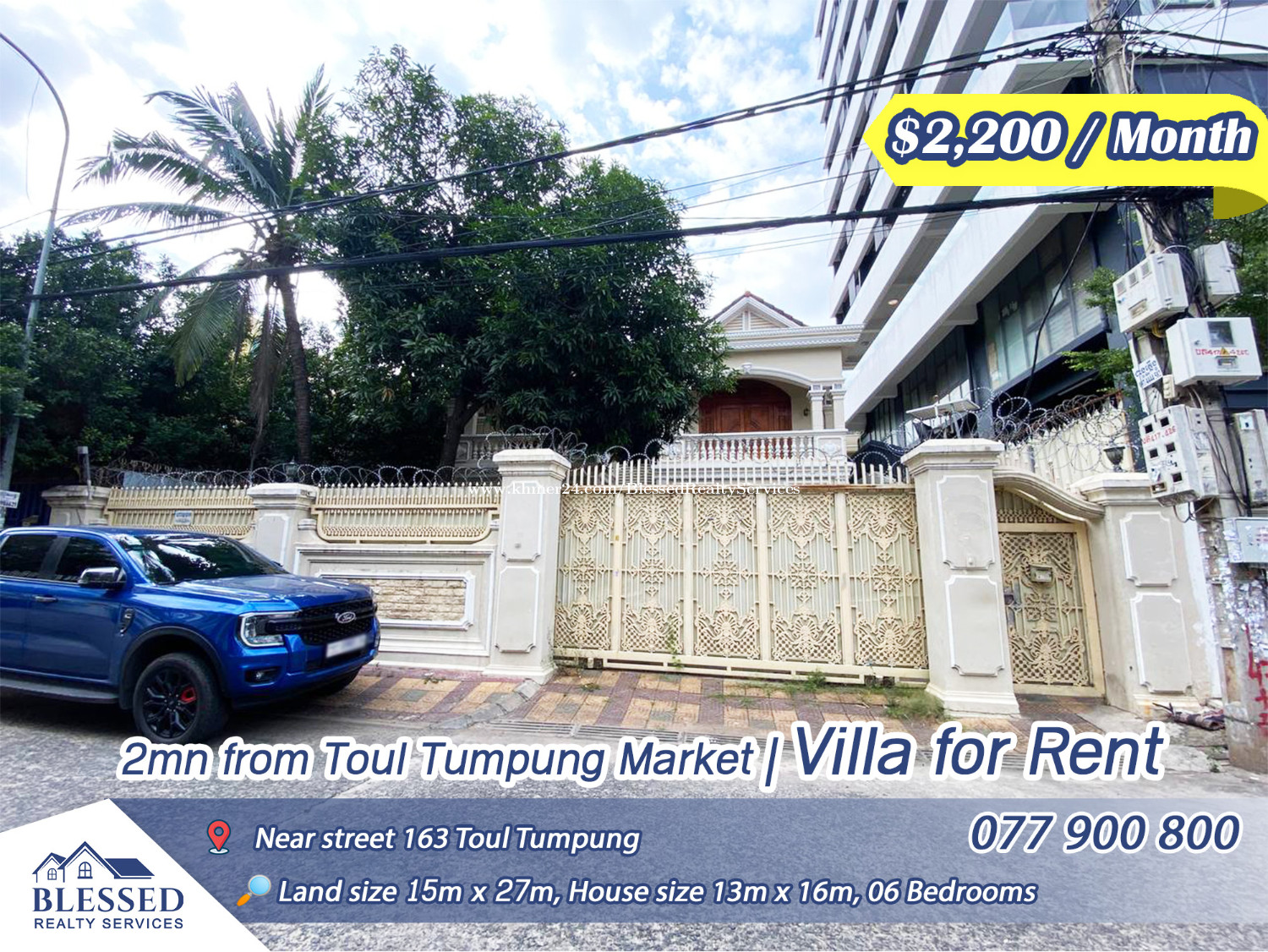 Toul Tumpung 1, 2mn from Toul Tumpung Market ๐ฅ Villa for Rent ๐ฅ ๐ฐ Price: $2,200 / month โจ Land size: 15m x 27m โจ House size: 13m x 16m โจ Bedrooms: 06 โจ Facing North ๐ Location: Best place for open office, living, clinic or other business. Toul Tumpung 1๏ผ่ท Toul Tumpung ๅธๅบไป 2 ๅ้่ทฏ็จ๐ฅๅซๅข ๅบ็ง๐ฅ ๐ฐไปทๆ ผ๏ผ$2,200/ๆ โจๅๅฐ้ข็งฏ๏ผ15็ฑณ x 27็ฑณ โจๆฟๅฑ้ข็งฏ๏ผ13็ฑณ x 16็ฑณ โจๅงๅฎค๏ผ6้ด โจๆๅ ๐ไฝ็ฝฎ๏ผๆฏๅผๆพๅผๅๅ ฌๅฎคใๅฑ ไฝใ่ฏๆๆๅ ถไปๅไธ็จ้็็ๆณไน้ใ ๐ Contact: 077900xxxClick To Call โก๏ธ Telegram: https://t.me/SEARDAVID Channel Telegram: https://t.me/rent_blessedrealty
