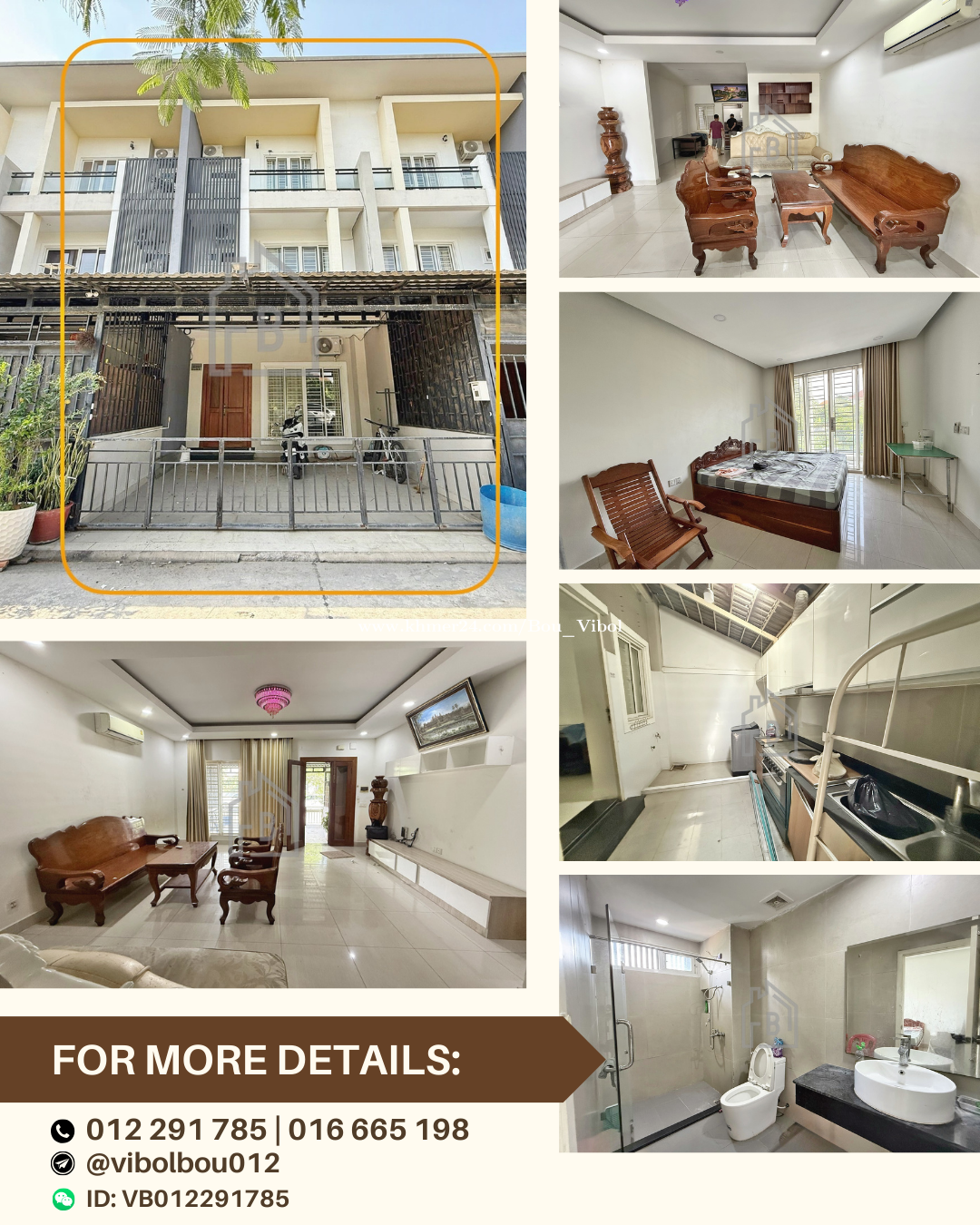 Townhouse 4 Bedrooms for RENT near CHIP MONG Mall_Sen Sok *Location: Sangkat Krang Thnong, Street 72P House Details: ✔️ Community Gate (Borey) ✔️ Land size : 5.5m x 18m ✔️ House size : 5.5m x 12m ✔️ Bedrooms : 4 ✔️ Bathrooms : 5 ✔️ Kitchen : 1 ✔️ Living Room : 1 ✔️ Facing to south ✔️ Fully Furnished ✔️ 24/7 Security Guards 🏷Rental Price: $550/month _ _ _ _ _ _ _ _ _ _ _ _ _ _ _ ☎️PLEASE CONTACE US: +85512291xxxClick To Call / +85516665xxxClick To Call +Telegram: https://t.me/vibolbou012 +WhatsApp: https://wa.link/2zexez +WeChat ID: vb016665xxxClick To Call
