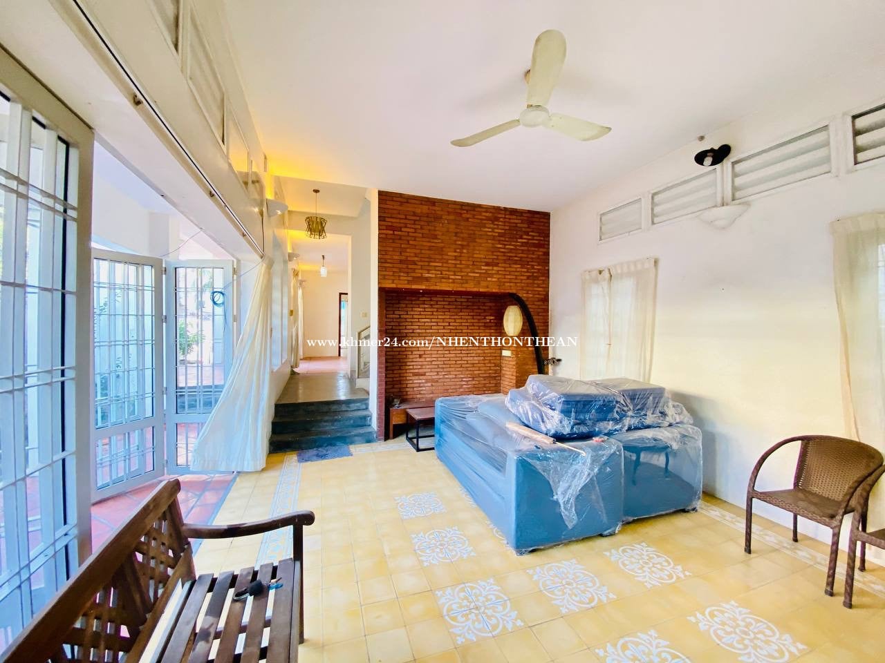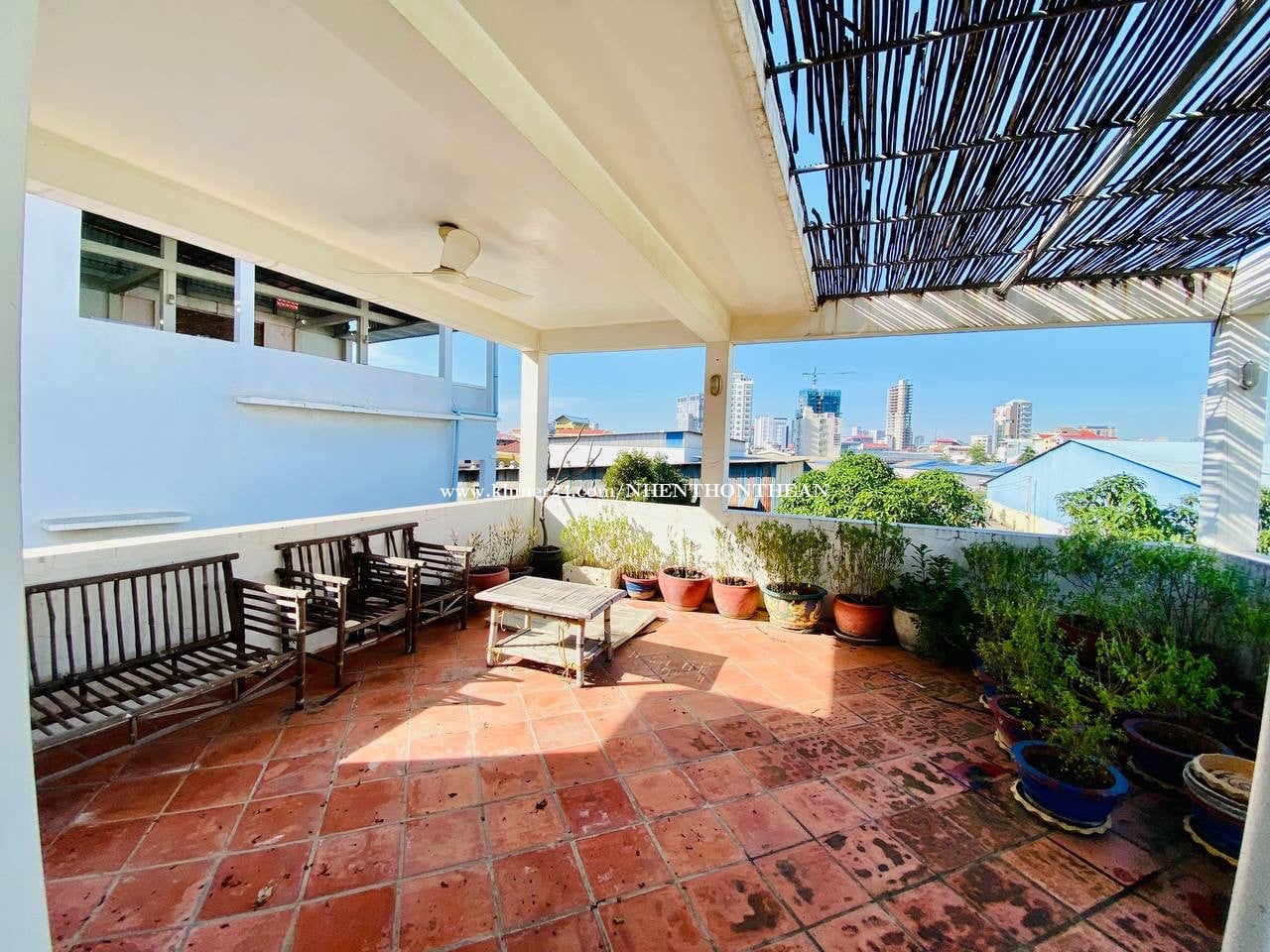 ๐ก Townhouse for Rent | Beoung Tompun Area Only 300m from Street 271 few Minutes from Russian Market ๐ฒ Price: $1,500/month (Negotiable) ๐ Bedrooms: 5 ๐ Bathrooms: 5 ๐ Land Size: 10m ร 40m = 400 sqm ๐ Building Size: 6m ร 20m = 360 sqm ๐ Location: Beoung Tompun, 300m from Street 271 โธป โจ Property Features: โข Beautiful front and back garden โข Spacious roof terrace โข Partially furnished โข Ability to walk around the entire house โข Two-car parking inside the property โข Suitable for residential living or office use