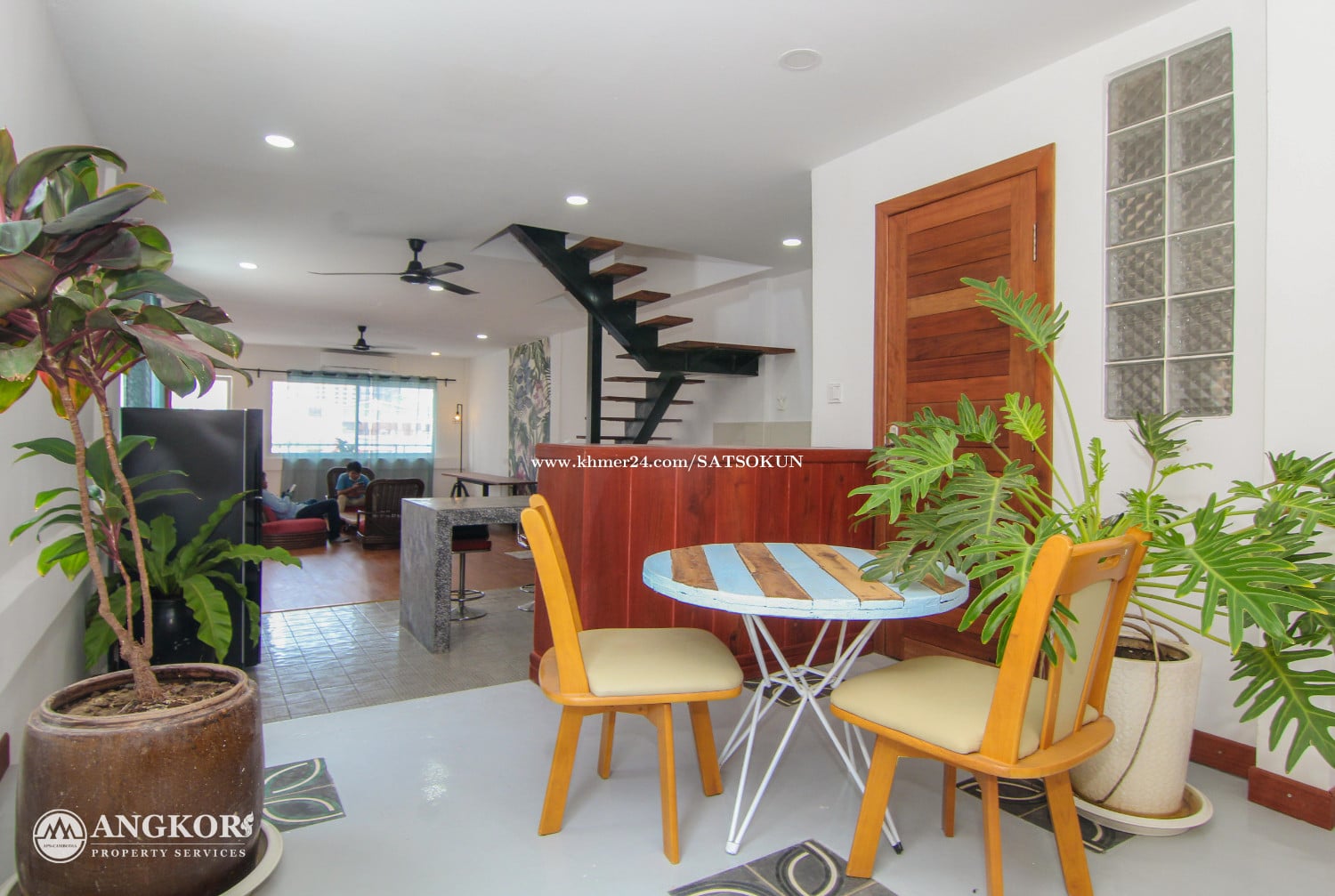 Western decorated by duplex style room types for rent nearby Phsar Thmey Market. It has 2 bedroom duplex, 3 bathroom, built in closets, hardwood floor, natural light, outdoor space and furnished. The unit is equipped with a balcony, stove, refrigerator, wooden cabinets and a washing machine. Building amenities include security, internet, cable, atc. + Offer Price: $ 600 | Negotiated + Unit floor: 2nd floor + Unit Size: 100sqm + 2 Bedroom + 3 Clean Bathrooms + 1 Clean Kitchen + 2 balcony front and back view + Fully Furnished Unit apartment MORE INFORMATION CONTACT US: Website: www.angkorproperty.net Email: aps*********@gmail.comClick To Sent Email Tell: 098335xxxClick To Call-099335xxxClick To Call