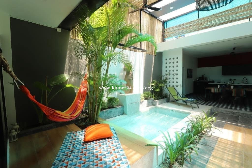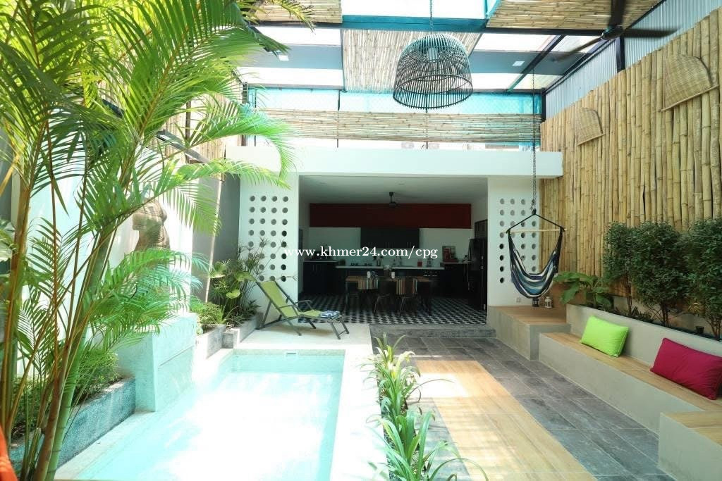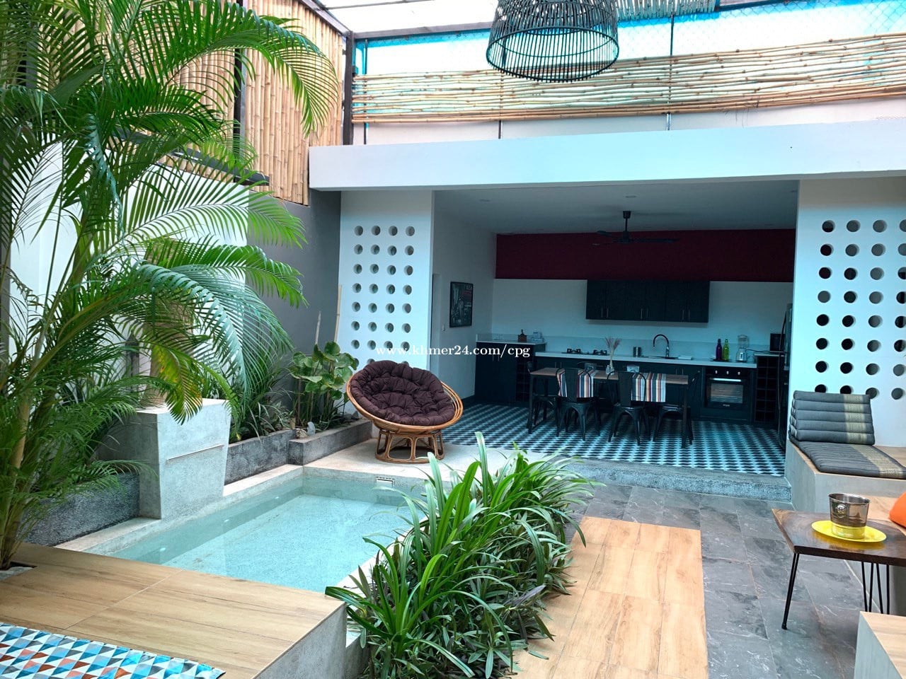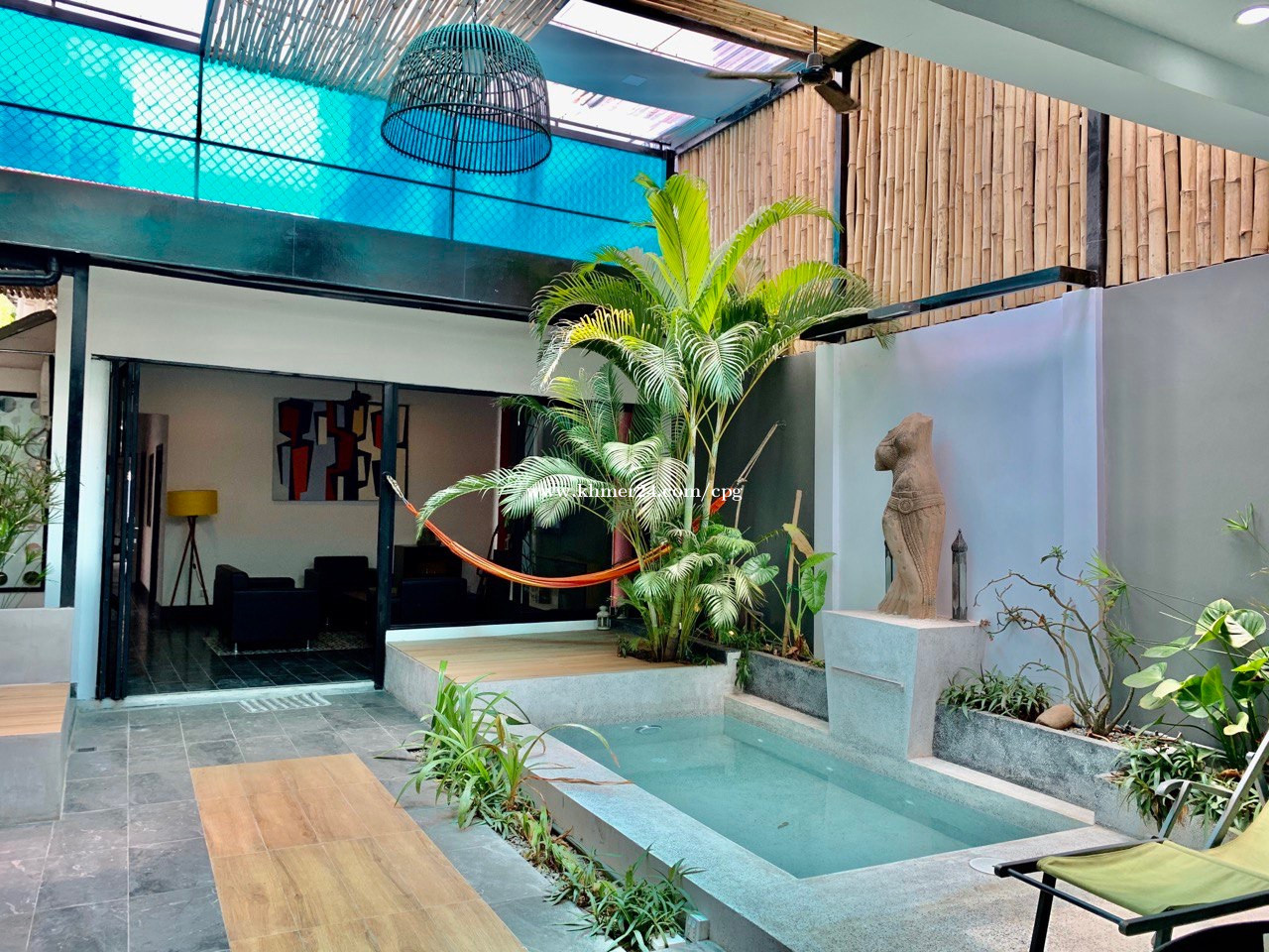 Townhouse For Rent In Tonle Bassac, next to BKK1 Available: 22th August 2025 Price: 1400$ Per month Negotiable 2Bedrooms 2Bathrooms plus 1 toilet Land size about: 7.5m x 25m Fully furnished 1 Jacuzzi EDC and Water pay directly bill to state