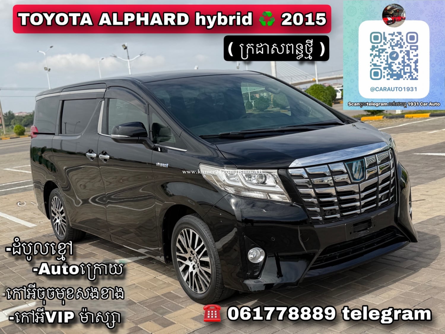 ✨✨✨មកដល់ជាក់ៗ ✨✨✨ ✳️ តំលៃសាង 43500$ $ចរចា( ធានា១០ថ្ងៃ ) ✅ បញ្ចុះសល់ 45000$ ចរចា ( ធានា២ខែ) 🔱TOYOTA ALPHARD Hybrid ♻️2015 (ក្រដាសពន្ធថ្មី) ( កែគុណភាព ផ្តិតទឹកស្អាតក្រៅក្នុង រត់មិនញ័រ ប្រព័ន្ធភ្លើងស្តង់ដា💯) ▪️Pre-Collision Alert ( ប្រព័ន្ធផ្តល់សញ្ញាពេលឧបសគ្គខាងមុខ) ▪️អូតូផ្លិតទឹក ▪️កៅអីមុខចុចសងខាង ▪️កៅអីVIP ម៉ាស្សា ▪️ទ្វាក្រោយAuto ▪️ម៉ាញ៉េ Bluetooth + Apple-Car_Play ▪️កញ្ចក់ក្តោបAuto ▪️ប្រើត្រឹម ១២មុឺនKm ▪️យ៉ាន់ហ្សុីន R18 ▪️Hybrid ♻️System / ECo mode សុីតិច 🪅🪅Free 4 មុខ🪅🪅 ➕Free កៅអីVIP ម៉ាស្សា រឺ កៅអីSC ➕Free កំរាល VIP ១ឈុត ➕Free ប្តូរប្រេងម៉ាសុីន ប្រអប់លេខជូន. 🚩1931 Car Auto II នាំចូលផ្ទាល់ពីUSA & Japan 📌Join Group 1931 Car Auto លក់រថយន្ត https://t.me/CarAuto1931 ☎️ 061778xxxClick To Call // 098893xxxClick To Call // 0976878xxxClick To Call telegram