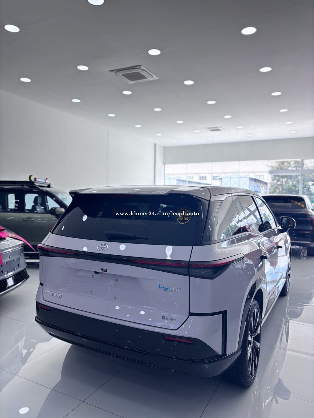 Toyota BZ3X EV 610KM Fulloption កំលាំងម៉ូទ័រ:224 hp កំលាំងរមួលម៉ូទ័រ:210 N•m ល្បឿនអតិបរមា:160 km/h អាគុយផ្ទុកអគ្គិសនីបាន:67.92 kWh កំរិតស៊ីភ្លើង:12.8 kWh/100km សាកថ្មលឿន:40នាទី សាកថ្មយឺត:12ម៉ោង កំរិតបញ្ចេញភ្លើងប្រើb lvl:3.3kw ទំហំនឹងខ្នាតរថយន្ត:4600×1850×1645mm ដំណើកា:ដោយកង់មុខ ធានា:3ឆ្នាំរឺ 10ម៉ឺនkm ផ្ទៃខាងក្នុងពណ៌ការ៉ុត ប៉ាស់11 (បាស់yamaha) Years 2025 model 2025 / មានកៅអីក្តៅ2 ខាងមុខ Senser 4 មុខមួយធំក្រោយ3 / ពន្ធផ្លូវ50 មុឺន រង្វង់កង់R19 មានច្រេីនពណ៍ រថយន្តក្នុងស្តុកស្រាប់