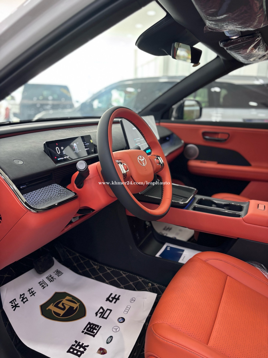 Toyota BZ3X EV 610KM Fulloption 电动机马力កំលាំងម៉ូទ័រ:224 hp 电动机扭矩កំលាំងរមួលម៉ូទ័រ:210 N•m 最高车速ល្បឿនអតិបរមា:160 km/h 电池容量អាគុយផ្ទុកអគ្គិសនីបាន:67.92 kWh 百公里耗电量កំរិតស៊ីភ្លើង:12.8 kWh/100km 快充时间សាកថ្មលឿន:40នាទី 慢充时间សាកថ្មយឺត:12ម៉ោង 对外放电功率កំរិតបញ្ចេញភ្លើងប្រើ:3.3kw 尺寸ទំហំនឹងខ្នាតរថយន្ត:4600×1850×1645mm 驱动方式ដំណើកា:ដោយកង់មុខ前驱 质保ធានា:3ឆ្នាំរឺ 10ម៉ឺនkm ផ្ទៃខាងក្នុងពណ៌ការ៉ុត 内饰都是橙色 ប៉ាស់11 បាស់yamaha Years 2025 model 2025 / មានកៅអីក្តៅ2 មុខSenser 4 មុខមួយធំក្រោយ3 / រង្វង់កង់R19
