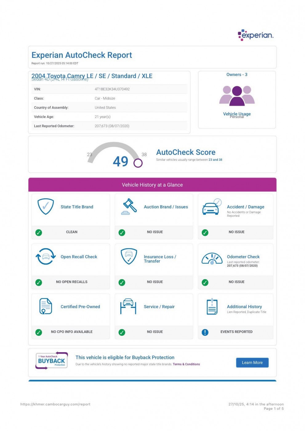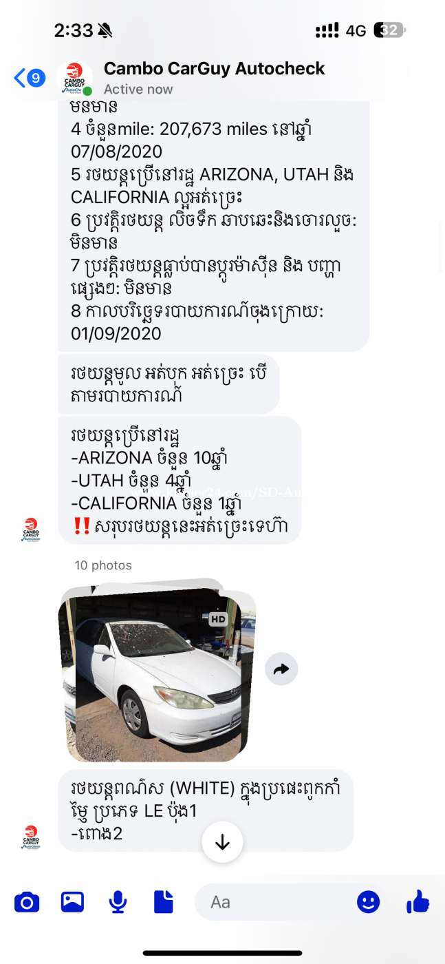 តម្លៃ13,500ចរចាបាន Toyota Camry LE 2004 ស្តេចបាឡែន ថ្នាំសុីន90% ស្លាកលេខ2CH ម្ចាស់ដើម សាច់ដែកថ្មី សំណុំដេីម100%