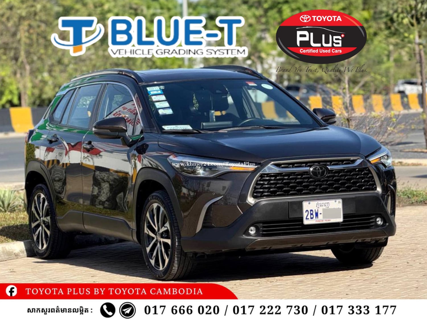 TOYOTA COROLLA CROSS 2023 តម្លៃ : 35,500$ ចរចាបាន ពត៌មានរថយន្ត : • ការផ្តល់ជូន : កាត់ឈ្មោះ ប្តូរប្រេង និង ការធានា • ស្លាកលេខ : ភ្នំពេញ 2BW-XXXX • ចម្ងាយប្រើប្រាស់ : 62,440 KM • ពណ៌ : ពណ៌ត្នោត សេវាកម្មក្រុមហ៊ុនរួមមាន : ➡️ បង់រំលស់ជាមួយក្រុមហ៊ុនបង់មុនចាប់ពី 10% ដល់ 70%នៃតម្លៃឡាន រយៈពេលពី1»6ឆ្នាំ ➡️ ទិញដាច់ ដោះដូរគ្រប់ស៊េរីតាមតម្លៃទីផ្សារ សេវារហ័ស មិនស្មុគស្មាញ ☎️សាកសួរពត៌មានលម្អិតឥលូវនេះ : • Contact us via : 017666xxxClick To Call / 017333xxxClick To Call / 017222xxxClick To Call 📍តំណភ្ជាប់ផែនទីមកកាន់ទីតាំងយើងខ្ញុំ៖ https://maps.app.goo.gl/MUPNrtTgVwyK8Gtd8?g_st=ic Stay Connected : ⏬️Facebook: https://www.facebook.com/toyotaplusbytoyotacambodia ⏬️Website: https://www.toyota.com.kh/.../toyota.../listing.html ⏬️Telegram: https://t.me/toyotaplusbytoyotacambodia ⏬️Telegram: https://t.me/toyotaplus_tradein ⏬️Instagrams: https://www.instagram.com/toyotaplusbytoyotacambodia?igsh=OGQ5ZDc2ODk2ZA== ⏬️YouTube: https://youtube.com/@toyotaplusbytoyotacambodia ⏬️Khmer24: https://www.khmer24.com/ToyotaPlus