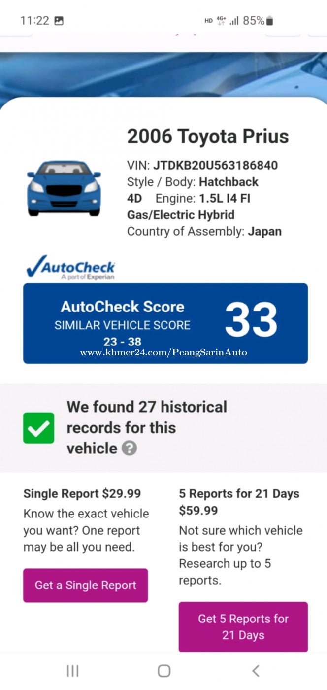 Toyota prius full option 2006 ពណ៌ប្រផេះ ធានាអត់បុក ម៉ាស៊ីនថ្មីក្នុងថ្មី បាតថ្មីកង់ថ្មី ទឹកថ្នាំហ្សីន. Tel 012697xxxClick To Call. 0889919xxxClick To Call