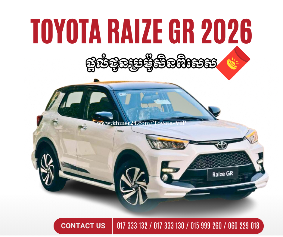 💖 𝐓𝐨𝐲𝐨𝐭𝐚 𝐑𝐚𝐢𝐳𝐞 𝐆𝐑 នៅតែពេញនិយមសម្រាប់មនុស្សសម័យថ្មី 💵 តម្លៃ 𝟐𝟖,𝟒𝟎𝟎$ សម្រាប់ប្រម៉ូសិននៅក្នុងខែនេះ អតិថិជននឹងទទួលបាន 🔹ការចាប់អាំងប៉ាវដែលមានទឹកប្រាក់ចាប់ពី 𝟐𝟔𝟖$ ដល់ 𝟓𝟔𝟖$ »» ការផ្តល់ជូនបន្ថែម 1️⃣ 𝐅𝐫𝐞𝐞 កំរាលជើង1ឈុត 2️⃣ 𝐅𝐫𝐞𝐞 ផ្លាកលេខភ្នំពេញ + ឈៀក4ឆ្នាំ (អត្តសញ្ញាណប័ណ្ណភ្នំពេញ) 3️⃣ ការធានាចេញពីរោងចក្រ 3ឆ្នាំរឺ10ម៉ឺនគីឡូ 4️⃣ 𝐅𝐫𝐞𝐞 ឆែកបច្ចេកទេសសម្រាប់ការយកទៅប្រើប្រាស់ ១ខែ ឬ១ពាន់គីឡូម៉ែត្រដំបូង សម្រាប់ព័ត៌មានលម្អិត សូមទំនាក់ទំនងផ្នែកលក់រថយន្ត៖ ☎️ 017333xxxClick To Call / 017333xxxClick To Call (𝐂𝐞𝐥𝐜𝐚𝐫𝐝) ☎️015999xxxClick To Call (𝐒𝐦𝐚𝐫𝐭) ☎️060229xxxClick To Call (𝐌𝐞𝐭𝐟𝐨𝐧𝐞) 👉 𝐓𝐞𝐥𝐞𝐠𝐫𝐚𝐦 𝐂𝐡𝐚𝐧𝐧𝐞𝐥:https://t.me/toyota_aws 👉 KH24 : https://www.khmer24.com/Toyota-VIP 👉 𝗪𝗲𝗯𝘀𝗶𝘁𝗲 : https://www.toyota.com.kh/en.html