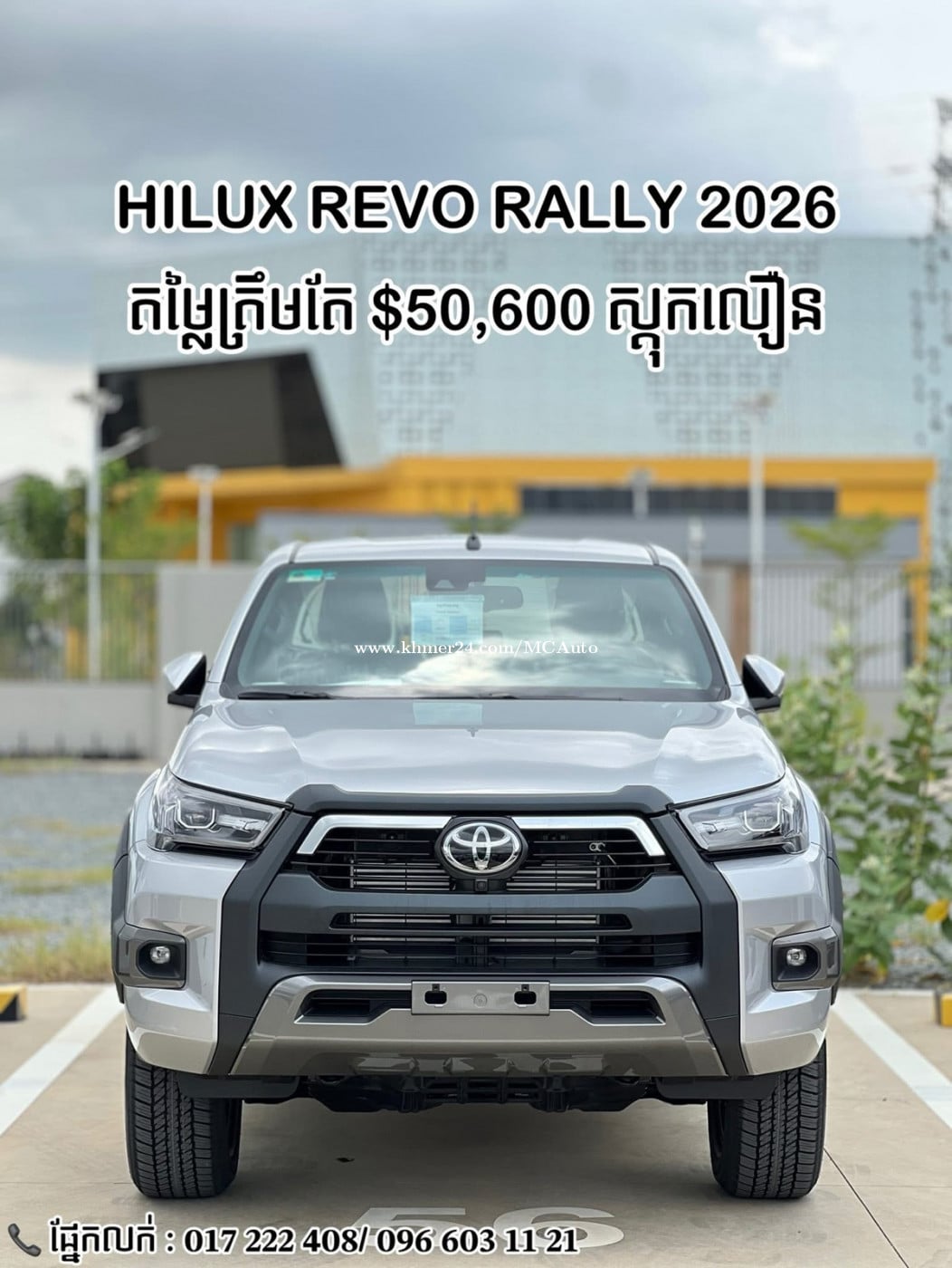 Toyota Hilux Revo Rally ម៉ូឌែល 2026 📞 ទំនាក់ទំនងផ្នែកលក់តាមរយៈ 015999xxxClick To Call / 017333xxxClick To Call / 0975222xxxClick To Call 📩 Telegram: https://t.me/Toyota_aws https://t.me/Toyota_AWS168 Legend of Adventure បានមកដល់ហើយ ជាមួយនឹងកម្លាំង និងសមត្ថភាពកាន់តែខ្លាំង – សូមណែនាំ Toyota Hilux Revo Rally ម៉ូឌែល 2026! រចនាឡើងដោយបច្ចេកវិទ្យាទំនើប និងសមត្ថភាពល្អឯក Toyota QDR (គុណភាព, ប្រើប្រាស់បានយូរ និង ភាពជឿជាក់), រថយន្ដ Toyota Hilux Revo Rally ផលិតឡើងយ៉ាងរឹងមាំធ្វើអោយការបើកបររបស់លោកអ្នករលូន ចាប់ពីផ្លូវក្នុងទីក្រុងរហូតដល់ផ្លូវលំបាក។ រចនាឡើងដោយបច្ចេកវិទ្យាទំនើប និងសមត្ថភាពល្អឯក Toyota QDR (គុណភាព, ប្រើប្រាស់បានយូរ និង ភាពជឿជាក់) ។ 🔥 ចំណុចពិសេស៖ ✨ រចនារូបរាងបែប ក្លាហាន និងទាក់ទាញ ផ្ដល់អនុភាពដែលមិននឹកស្មានដល់ ✨ ម៉ាស៊ីនផលិតឡើងល្អបំផុត ដើម្បីផ្ដល់នូវថាមពលខ្លាំងក្លា និង ប្រសិទ្ធភាពប្រេងដ៏ល្អ ជាមួយបច្ចេកវិទ្យាថ្មី ដែលផ្ដល់អោយលោកអ្នកនូវសុវត្ថិភាពខ្ពស់ ប្រកបដោយទំនុកចិត្ត ✨ កម្លាំងខ្លាំងក្លា និងភាពធន់រឹងមាំ ផ្ដល់ទំនុកចិត្ត សម្រាប់ការងារ ការធ្វើដំណើរ និងជីវិតប្រចាំថ្ងៃ គ្រប់ស្ថានភាព 💰 តម្លៃ៖ 50,600 ដុល្លារ 📍 សូមអញ្ជើញចូលមកកាន់សាខា Toyota Cambodia ដើម្បីទទួលបាននូវបទពិសោធន៍នៃ កម្លាំង និងអនុភាពរបស់រថយន្ដ Toyota Hilux Revo Rally ម៉ូឌែល 2026។ 📞 ទំនាក់ទំនងសម្រាប់ការកក់ និងសាកសួរ៖