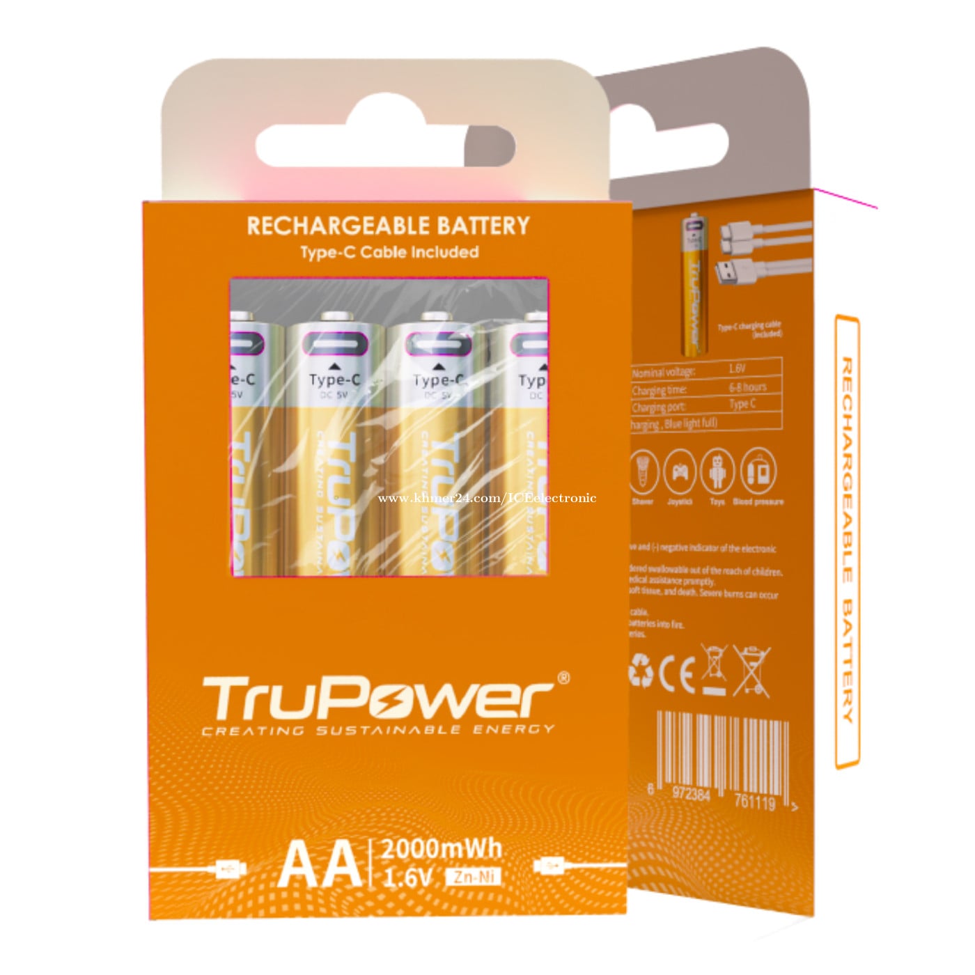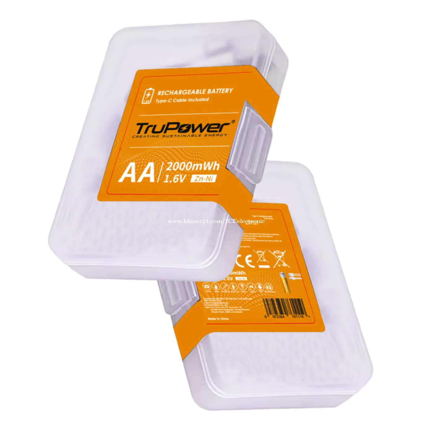 ๐ ๐ผ๐ฑ๐ฒ๐น: TruPower AA ZnโNi USBโC Rechargeable Battery (4โpack) ๐๐ต๐ฒ๐บ๐ถ๐๐๐ฟ๐ / ๐ฉ๐ผ๐น๐๐ฎ๐ด๐ฒ: ZnโNi (~1.6โฏV) ๐๐ฎ๐ฝ๐ฎ๐ฐ๐ถ๐๐: ๐ฎ๐ฌ๐ฌ๐ฌโฏ๐บ๐ช๐ต ๐ฝ๐ฒ๐ฟ ๐ฐ๐ฒ๐น๐น ๐๐ต๐ฎ๐ฟ๐ด๐ถ๐ป๐ด ๐ ๐ฒ๐๐ต๐ผ๐ฑ: ๐จ๐ฆ๐โ๐ (๐ฑ๐ฉ) ๐ถ๐ป ~๐ฒโ๐ด ๐ต๐ผ๐๐ฟ๐ ๐๐ฎ๐๐๐ฒ๐ฟ๐ ๐ฅ๐ฒ๐๐ฒ๐ป๐๐ถ๐ผ๐ป: up to ๐๐ฝ ๐๐ผ ๐ด๐ฌ% ๐ฐ๐ฎ๐ฝ๐ฎ๐ฐ๐ถ๐๐ ๐ฎ๐ณ๐๐ฒ๐ฟ ๐ญ ๐๐ฒ๐ฎ๐ฟ ๐๐๐ฐ๐น๐ฒ ๐๐ถ๐ณ๐ฒ: ๐ฏ๐ฌ๐ฌโ๐ญ๐ฌ๐ฌ๐ฌ ๐ฐ๐๐ฐ๐น๐ฒ๐ ๐ฆ๐ฒ๐ ๐๐ป๐ฐ๐น๐๐ฑ๐ฒ๐: ๐ฐ ๐๐ฎ๐๐๐ฒ๐ฟ๐ถ๐ฒ๐ + ๐๐ฎ๐ฏ๐น๐ฒ + ๐ฆ๐๐ผ๐ฟ๐ฎ๐ด๐ฒ ๐๐ผ๐ ๐ช๐ฎ๐ฟ๐ฟ๐ฎ๐ป๐๐: ๐ญ ๐ฌ๐ฒ๐ฎ๐ฟ Product Code: PN:TruPower Battery AA 2000mWh UPC:696000011xxxClick To Call