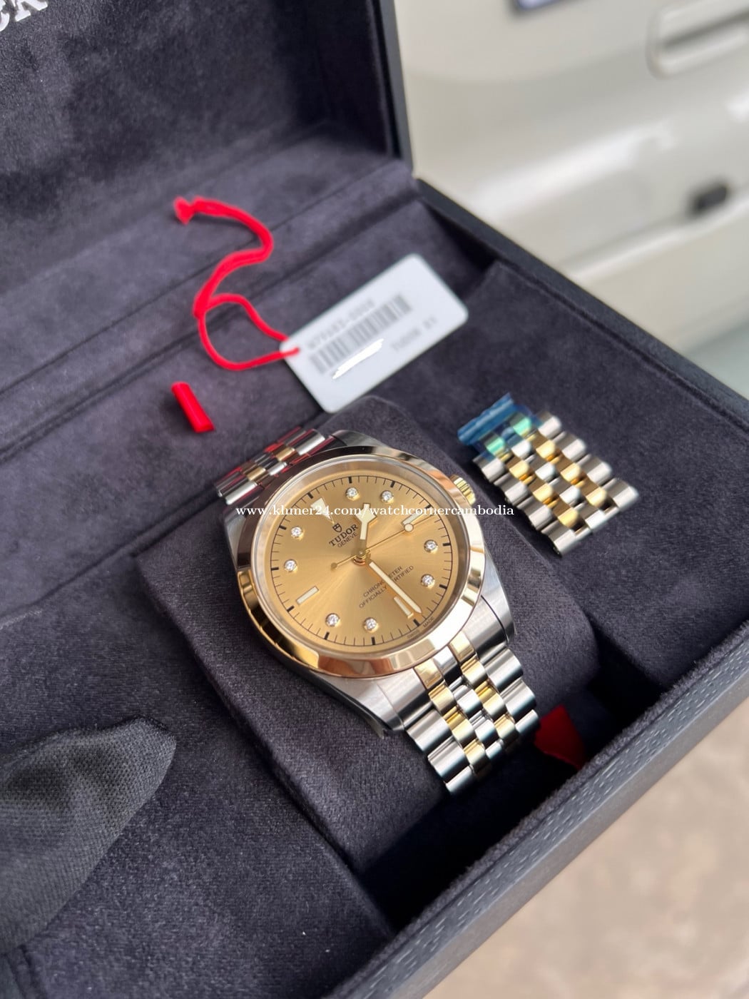-Tudor black bay 01 (Steel&gold )M79683-0008 (year 2022 ) -champagne colour Dial with Diamonds markers 8 PCs -movement calibre MT5601(COSC) -power reserve 70 hours -case size 41mm -sapphire crystal glass -condition 99.9 % like new [still have sealed on the watch ] -boxes & paper full set ! -boutique retail prices 8000$ -our price 4700$ ๐Note first come first serve ๐