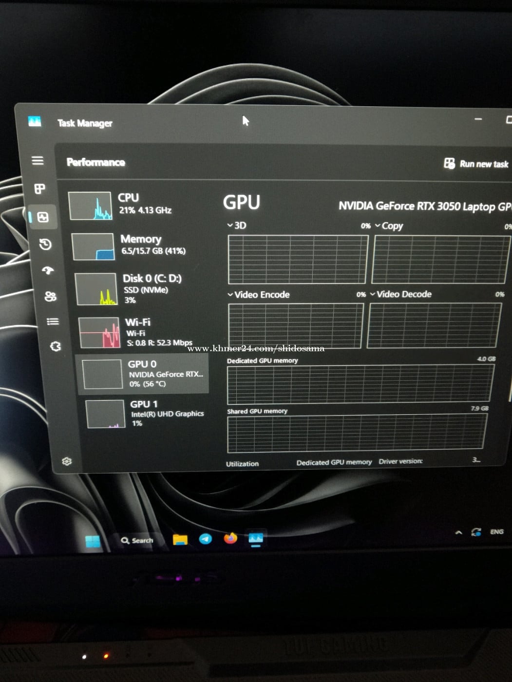 Asus TUF f15 (2021) SSD: 512G RAM: 16G CPU: Core i5 - 11400 @2.70GHz (ជំនាន់ទី 11) GPU: RTX 3050 4G Light keyboard Price💵: 449$ only Free: 5 item ក្នុងរូប ធានាលេីម៉ាសុីន 3 ខែ។