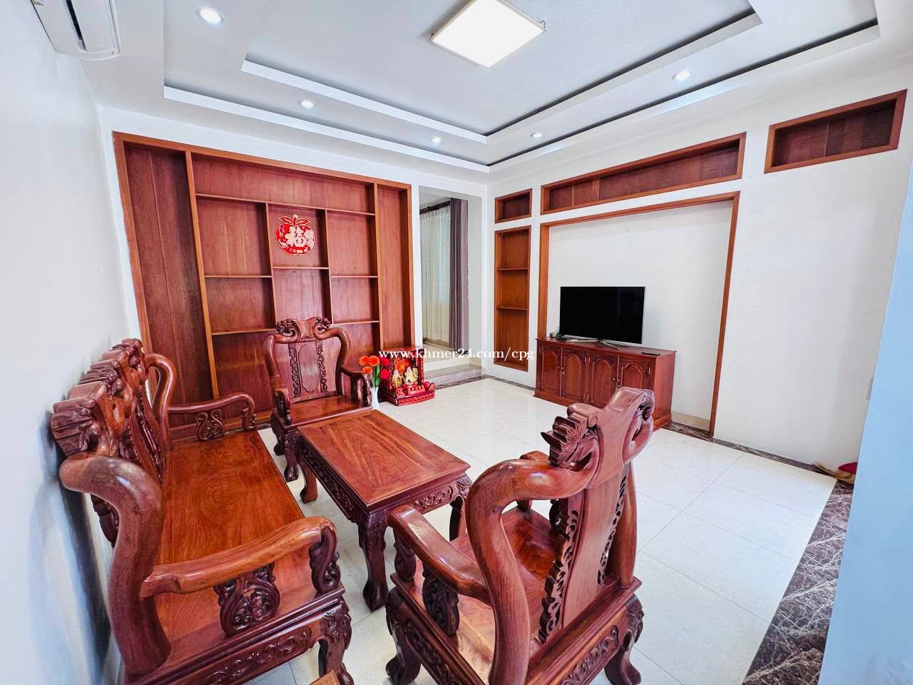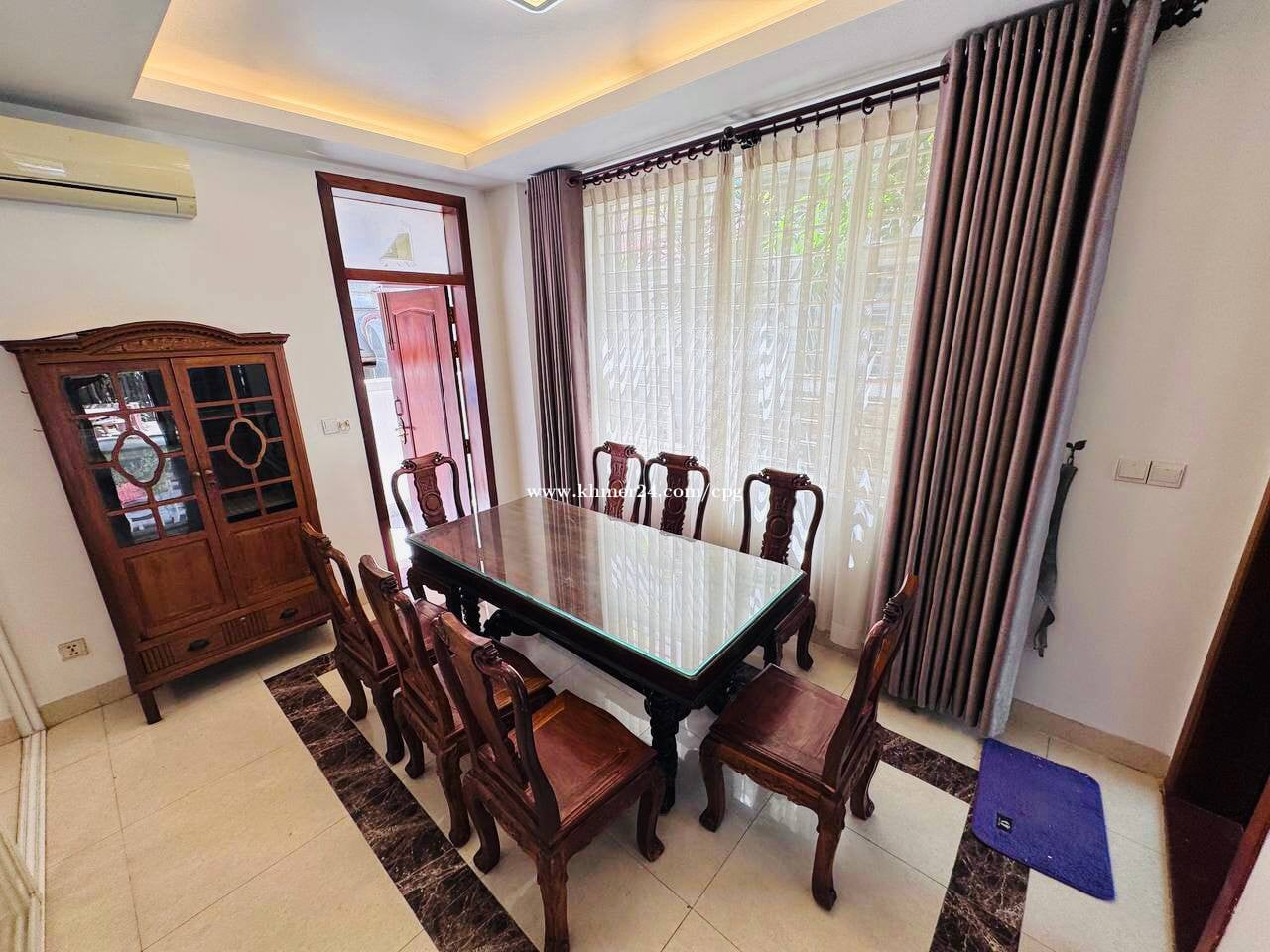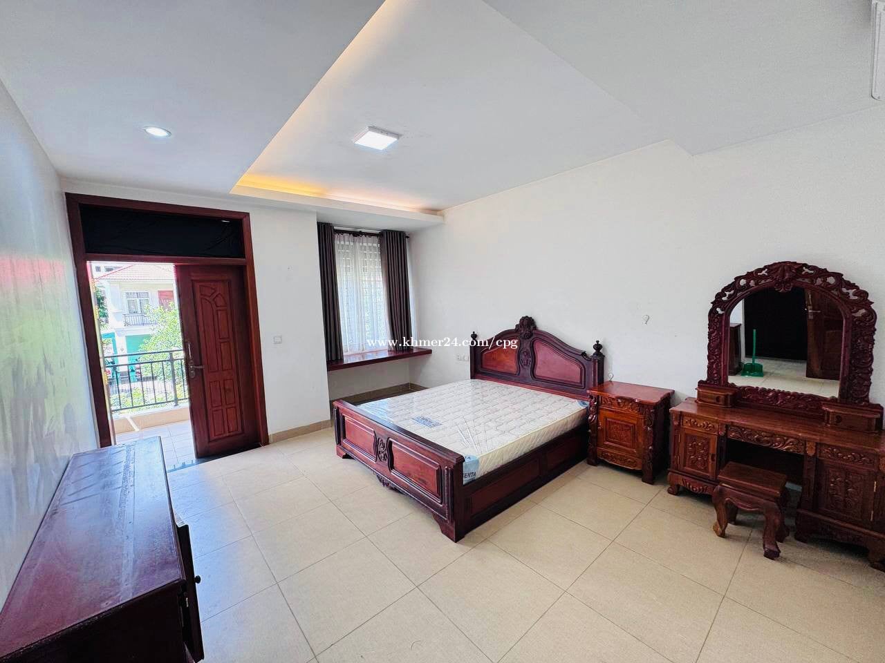 Twin Villa At Borey Grand Chroy Changvar • តម្លៃជួល/Rental Price: $1,500/month • បន្ទប់គេង/Bedroom: 04 • បន្ទប់ទឹក/Bathroom: 05 • ទំហំដី/Land Size: 8m x 22m • ទំហំផ្ទះ/House Size: 6m x 16m • សំភារះពេញ/Full Furniture