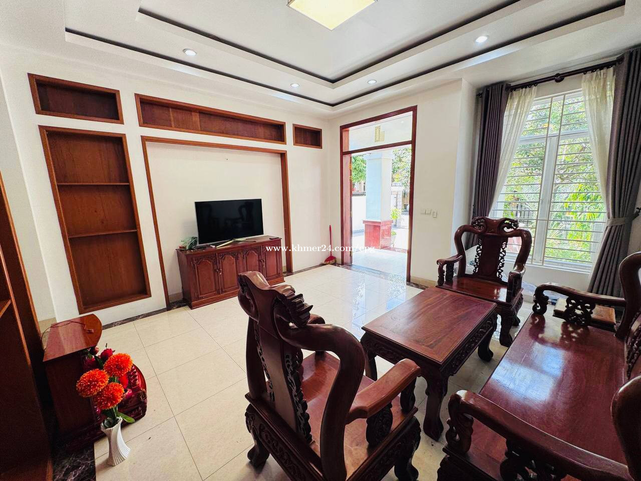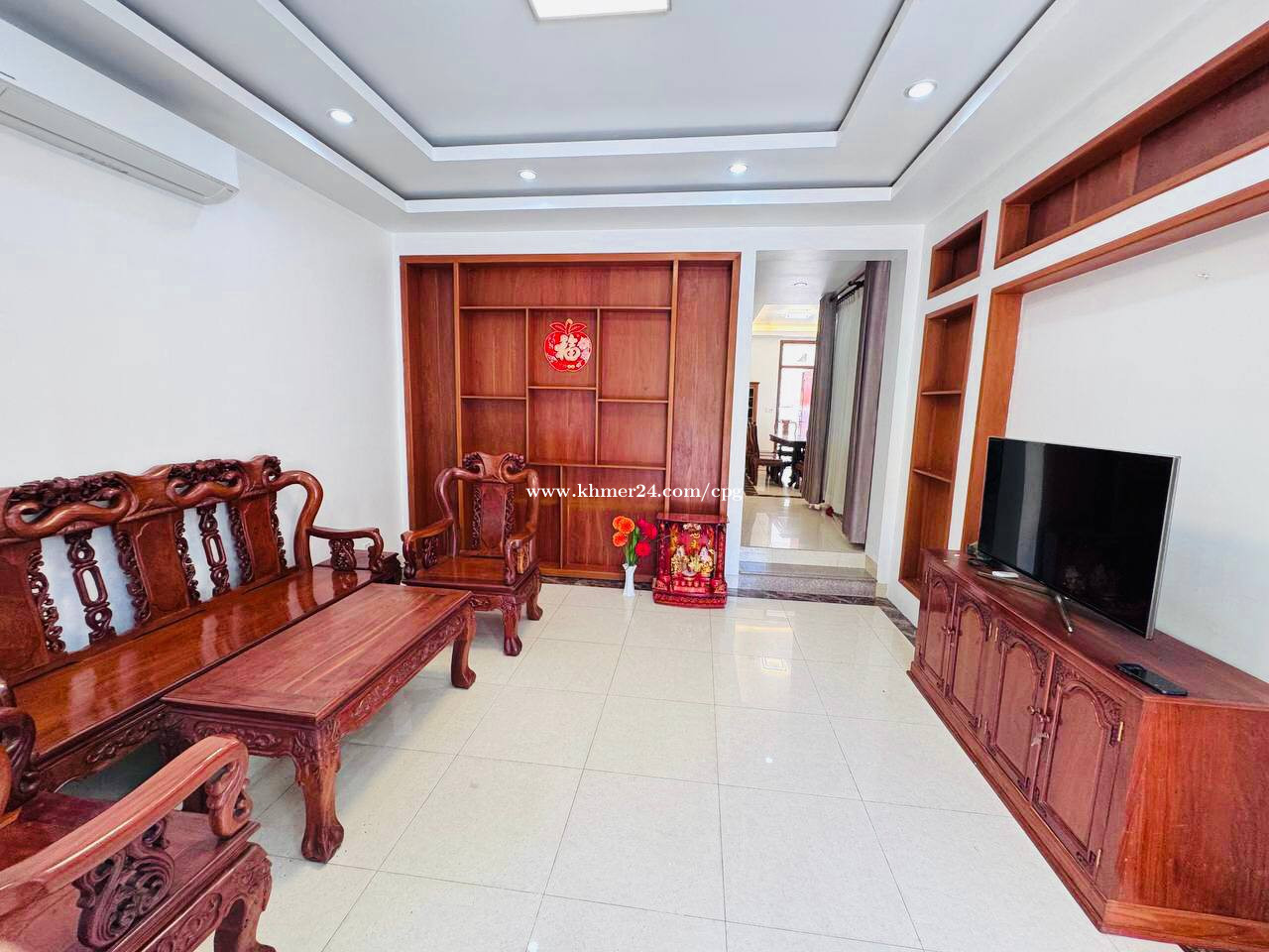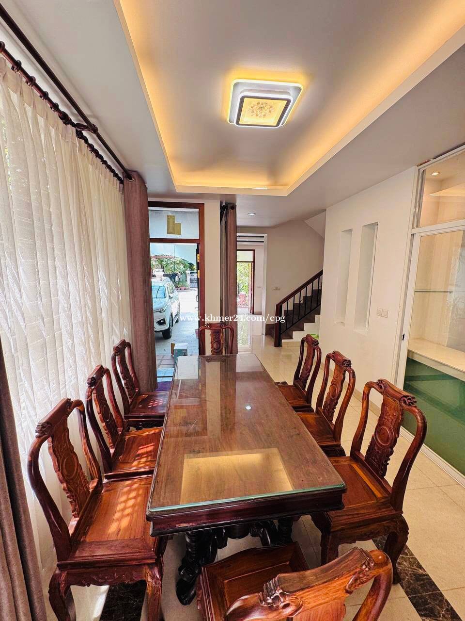 Twin Villa At Borey Grand Chroy Changvar • តម្លៃជួល/Rental Price: $1,500/month • បន្ទប់គេង/Bedroom: 04 • បន្ទប់ទឹក/Bathroom: 05 • ទំហំដី/Land Size: 8m x 22m • ទំហំផ្ទះ/House Size: 6m x 16m • សំភារះពេញ/Full Furniture