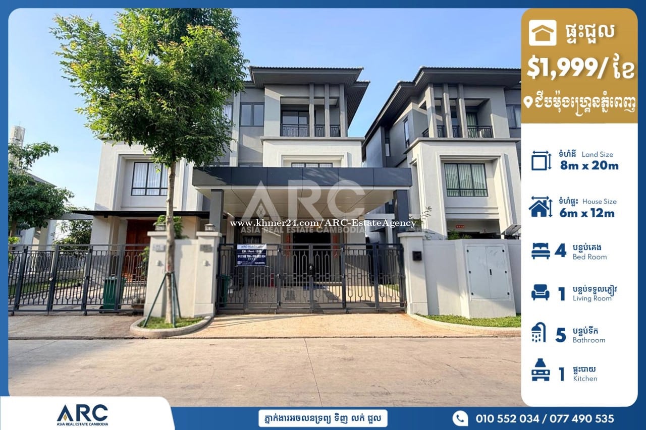 វីឡាភ្លោះសម្រាប់ជួលស្ដិតនៅបុរីជីបម៉ុងហ្គ្រេនភ្នំពេញ Twin Villa Rent At Boey Chip Mong Grand Phnom Penh 🏷 តម្លៃជួល / 售價 $1,999 🏷 ទំហំដី / 土地面積: 8m x 20m 🏷 បន្ទប់គេង /臥室 : 4 🏷 បន្ទប់ទឹក / 浴室 : 5 🏷 មានសម្ភារះពេញ / Full Furnitures 📍ទីតាំងផ្ទះជួលស្ថិតនៅបុរីជីបម៉ុងហ្គ្រេនភ្នំពេញ នៅជិតផ្សារអុីអន២ ខណ្ឌសែនសុខ រាជធានីភ្នំពេញ Chat to Agent/ 聊天到電報: 010552xxxClick To Call/077490xxxClick To Call Telegram https://t.me/ARCNhemBontheaSensok Channel Telegram https://t.me/ARCMrBonthea អាជ្ញាប័ណ្ណ៖ EV-08-069