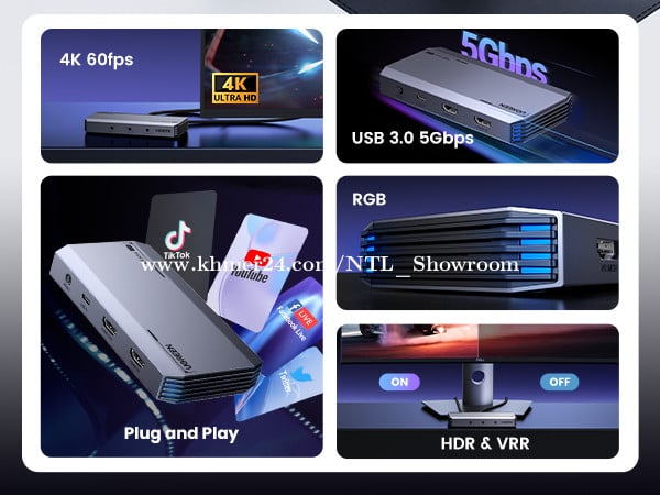 * UGREEN 25173 HDMI Video Capture Card 4K60Hz * HDMI input 4Kx2K@60Hz * HDMI loop out: 4Kx2K@60Hz * Capture output: USB-C 4K@60Hz Max, theoretical transfer up to 5Gbps * Video Formats: MJPEG/YUY2/NV12/RGB24/1420/P010 * Audio input: 3.5mm 3-pole microphone * Audio output: 3.5mm 3-pole/4-pole headset with mic * Digital Audio Sampling Rate: 24bit 48kHz(Max) * Color Depth: RGB/YCbCr 4:4:4/YCbCr 4:2:2/YCbCr 4:2:0 * Systems: Windows/macOS/Linux/iPadOs 17 up/Android 5.0 up
