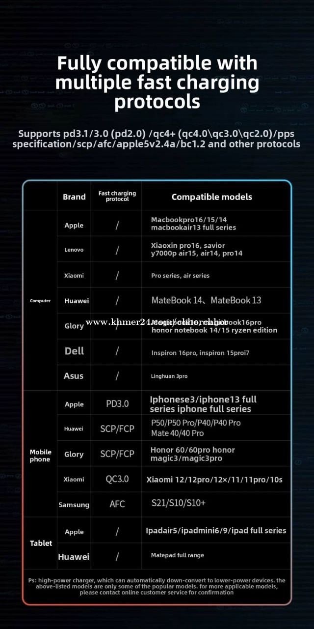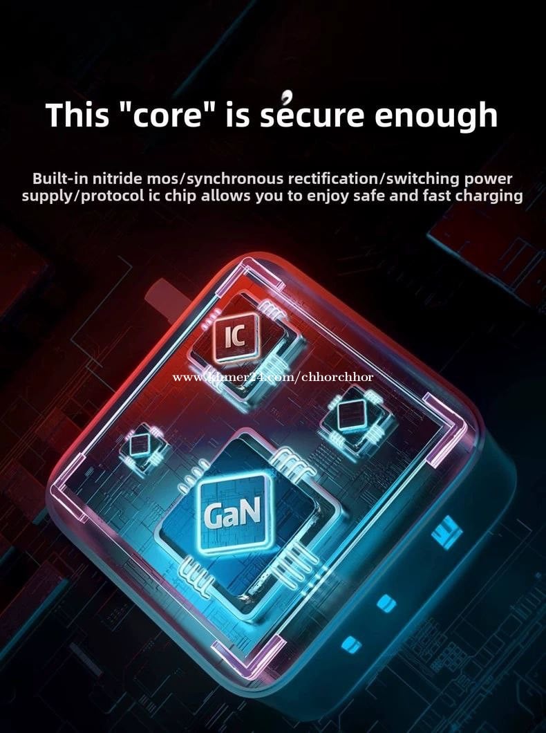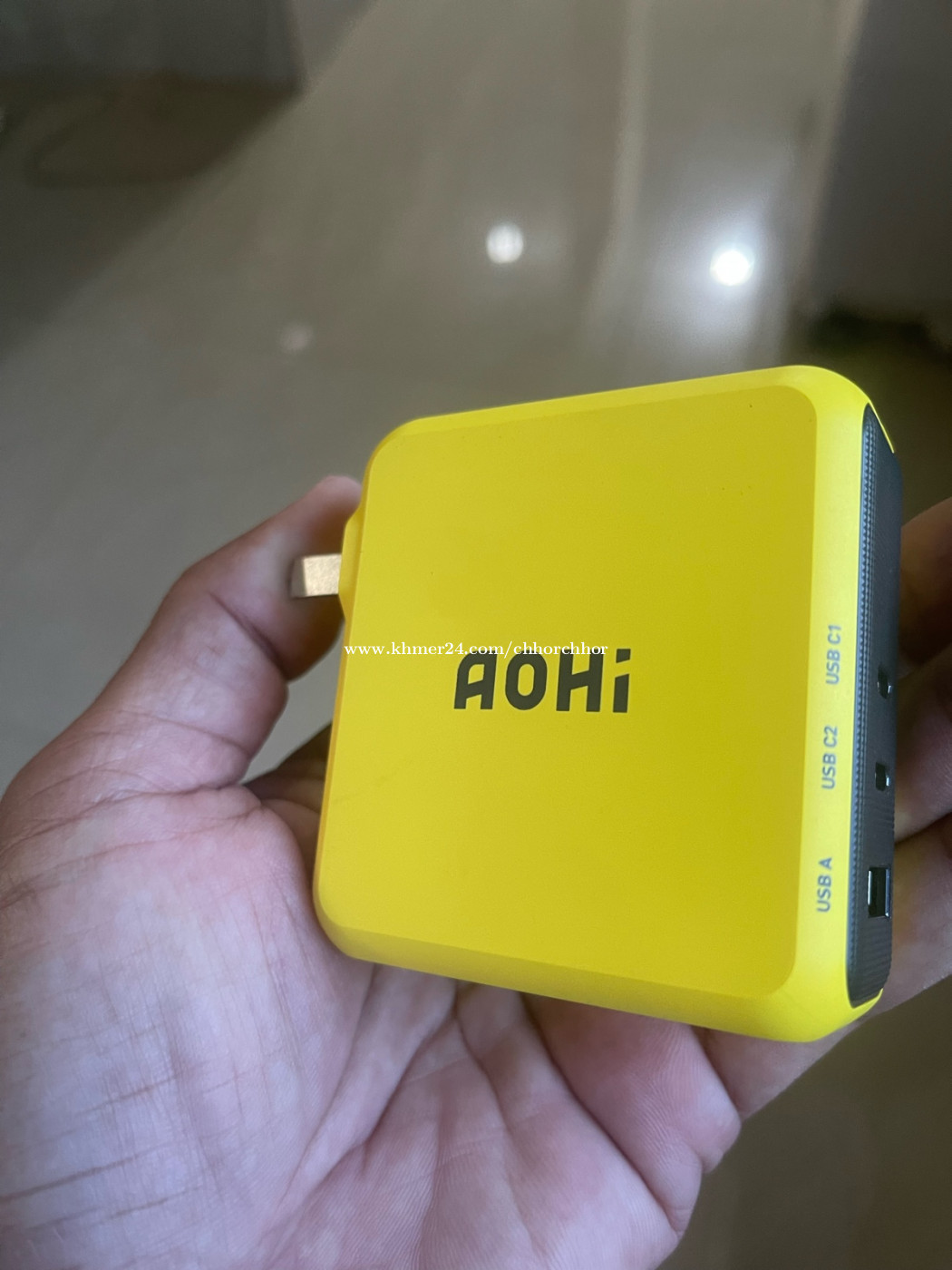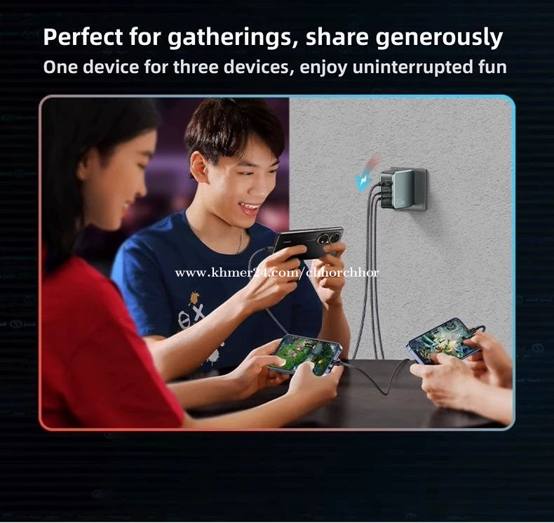 Ugreen Charger140w សាកបានទាំងទូរសព្ទ័និងកុំព្យូទ័រកំលាំងសាករហូតដល់140wមានរន្ធសាក៣ USB -Cមាន2និងUSB-Aមានមួយ
