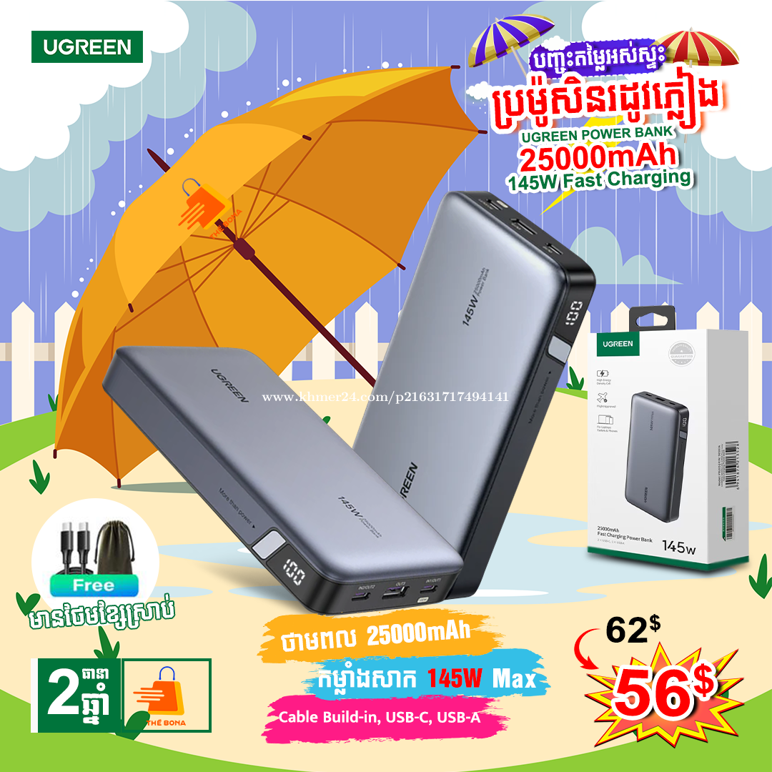 ☎️ ទំនាក់ទំនង: - Facebook Page: https://www.facebook.com/thebona89 - Telegram: https://t.me/TheBONA_Official_Store (0183637xxxClick To Call) - Group: https://t.me/TheBONA_Official_Group ============================== ✅ UGREEN សុវត្តិភាពក្នុងការប្រើប្រាស់ ✅ មានការធានាត្រឹមត្រូវ ក្នុងរយៈពេលវែង ✅ កម្លាំងវ៉ាត់ខ្លាំង សាកបានទាំង Laptop និងទូរស័ព្ទ ✅ សេវាដឹកជញ្ជូន 1$ ទូទាំងប្រទេស កម៉ង់ឥឡូវនេះ ទាន់មានប្រម៉ូសិនបងៗ 😍