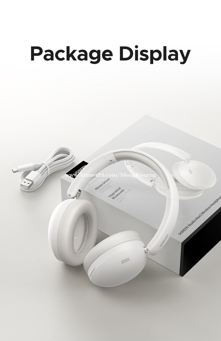 UGREEN Studio Max2 Headphones 45017 45018 ✅ Bluetooth 5.4 ✅Max. RF Output Power: 4dBm ✅Transmission Distance: 10m/33ft Max (no blocking) ✅Bluetooth Profile: HFP/AVRCP/A2DP/BLE/SPP ✅Codecs: AAC/SBC ✅Frequency Response: 20Hz-20kHz ✅Charging Port: USB-C, Battery: Polymer Lithium-ion Battery ✅Battery Capacity: 600mAh 3.7V (2.22Wh) ✅Charging Input: 5V⎓600 mA, Time: 1.5 hours ✅Operating Time: About 80 hours Color : Light Gray, Black 👍2 YEAR WARRANTY *This price not include delivery 🛒កម្ម៉ង់ឥឡូវនេះ 👇👇👇 ផ្នែកលក់ 012787xxxClick To Call https://t.me/cmksale1 Join ⏬ Telegram 🔔 https://t.me/+pMlYdQSBYkEyYTU1 ដើម្បីទទួលបាន ព័ត៌មានថ្មីៗ លម្អិត និងការផ្តល់ជូនពិសេសៗ ពីជួម៉េងគួងកុំព្យូទ័រ 🌐cmkcomputer.com 🌐https://www.facebook.com/MengKourngComputer 🌐https://www.facebook.com/cambodiafantech