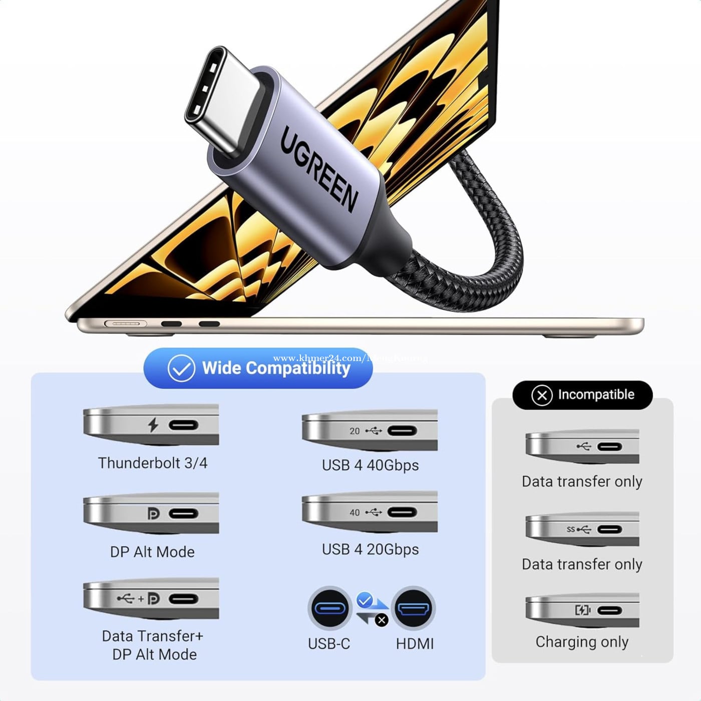 UGREEN Type-C to 8K HDMI Cable 48Gbps 2M 35596 ✅Resolution: Up to 8K@60Hz 48Gbps Also support 4k@240Hz, 4K@144Hz, 4K@120Hz, and 2K@240Hz ✅HDCP: 2.3 and backward compatible ✅Audio Sampling Rate: 24-bit/192kHz Max ✅Audio Formats: Supports LPCM/AC-3/DTS/DTS-HD Master Audio ✅Function Supported: Dolby Vision HDR10 + Audio and Video Sync *តម្លៃនេះមិនបូករួមសេវាដឹកជញ្ជូន *This price not include delivery 🛒កម្ម៉ង់ឥឡូវនេះ 👇👇👇 ផ្នែកលក់ 012787xxxClick To Call https://t.me/cmksale1 Join ⏬ Telegram 🔔 https://t.me/+pMlYdQSBYkEyYTU1 ដើម្បីទទួលបាន ព័ត៌មានថ្មីៗ លម្អិត និងការផ្តល់ជូនពិសេសៗ ពីជួម៉េងគួងកុំព្យូទ័រ 🌐cmkcomputer.com 🌐https://www.facebook.com/MengKourngComputer 🌐https://www.facebook.com/cambodiafantech