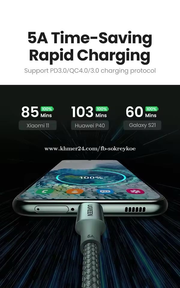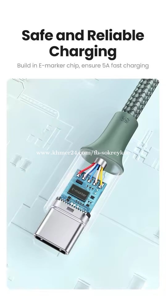 UGREEN USB-C 2.0 to Angled USB-C Braided Cable with Aluminum Shell 1M 100w ✅Function: Charging & Data Sync ✅USB 2.0 speed up to 480Mbps ✅5A fast charge ✅Support PD3.0/QC4.0/FCP(100W max) ✅Wire core: Tin-plated copper ✅Multiple internal shielding ✅Can not transmit audio and video ✅Aluminum case with braid 👍1 year warranty *This price not include delivery 🛒កម្ម៉ង់ឥឡូវនេះ 👇👇👇 ផ្នែកលក់ 015945xxxClick To Call https://t.me/reyoldmen