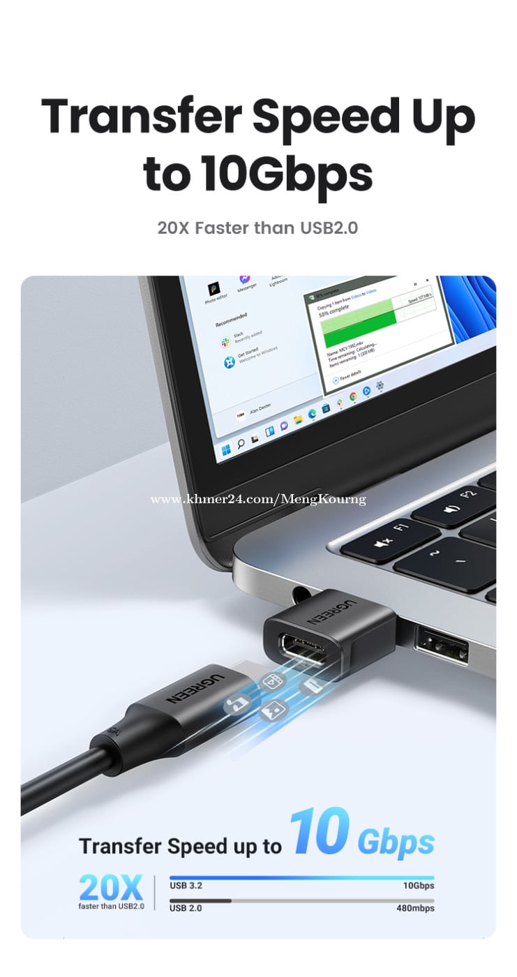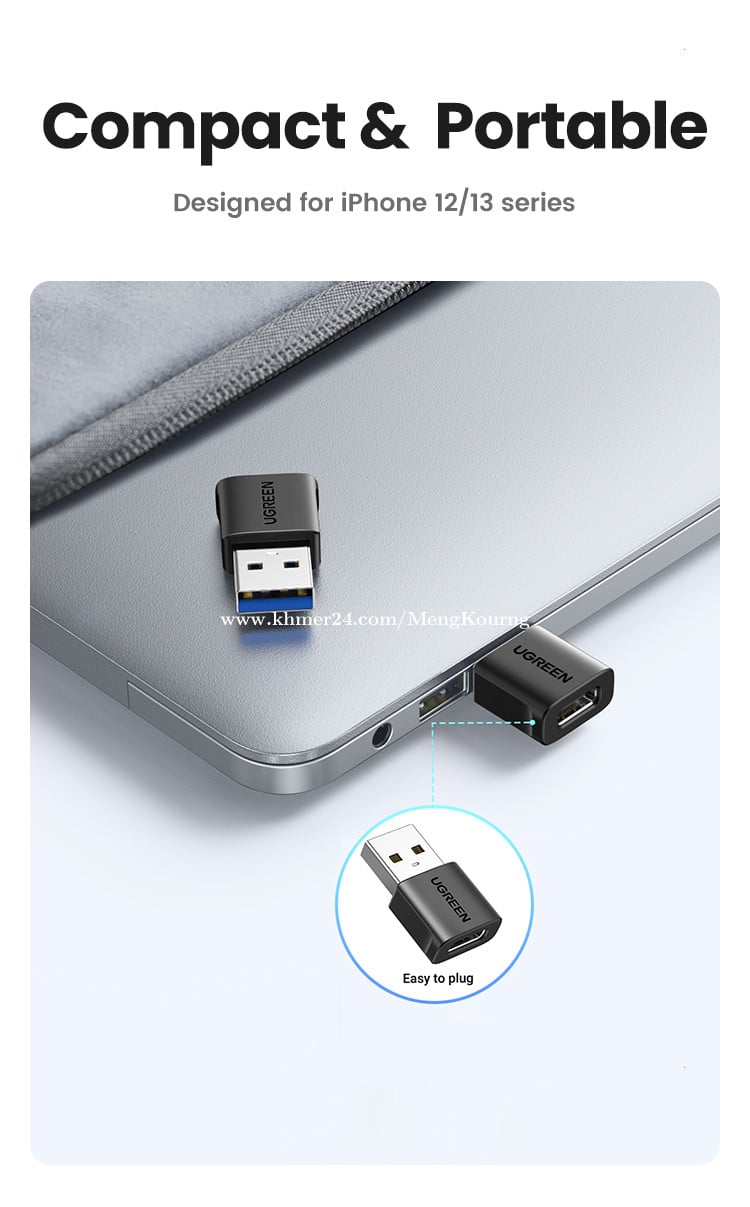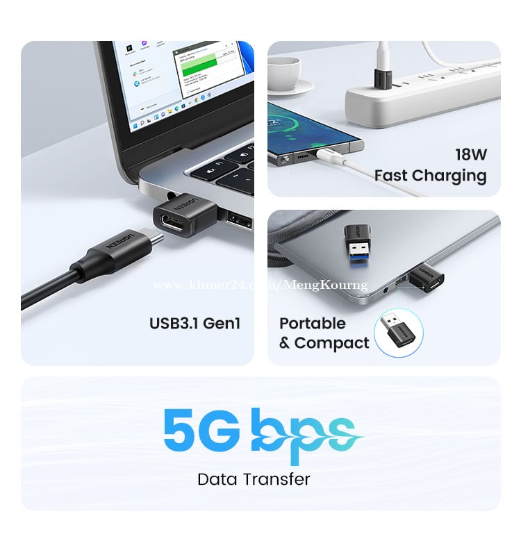 UGREEN USB-C Female to USB-A Male Adapter Set 2 Pack 45275 ✅ Carrying current 3A (Max) ✅ Number of pins USB-A: 9pin / Type-C female socket: 24pin ✅ Interface version/data transmission USB3.0/5Gbps ✅ Charging power 5V/3A, 9V/2A, 12V/1.5A (Max) ✅ Charging protocol AFC/FCP/QC/BC1.2 *តម្លៃនេះមិនបូករួមសេវាដឹកជញ្ជូន *This price not include delivery 🛒កម្ម៉ង់ឥឡូវនេះ 👇👇👇 ផ្នែកលក់ 012787xxxClick To Call https://t.me/cmksale1 Join ⏬ Telegram 🔔 https://t.me/+pMlYdQSBYkEyYTU1 ដើម្បីទទួលបាន ព័ត៌មានថ្មីៗ លម្អិត និងការផ្តល់ជូនពិសេសៗ ពីជួម៉េងគួងកុំព្យូទ័រ 🌐cmkcomputer.com 🌐https://www.facebook.com/MengKourngComputer 🌐https://www.facebook.com/cambodiafantech