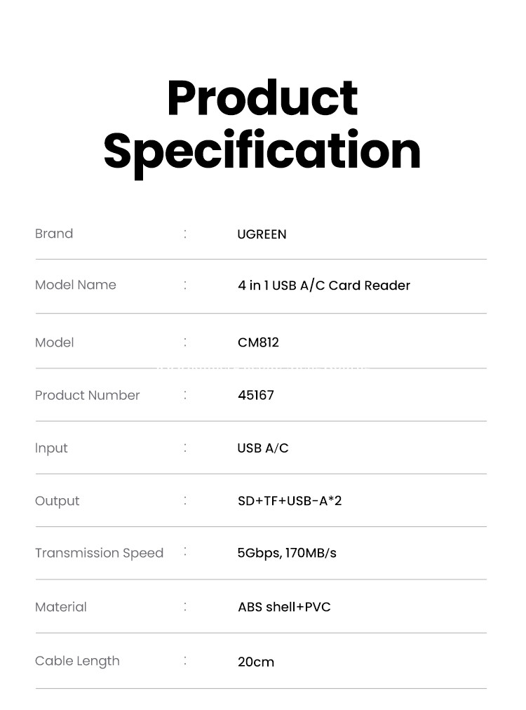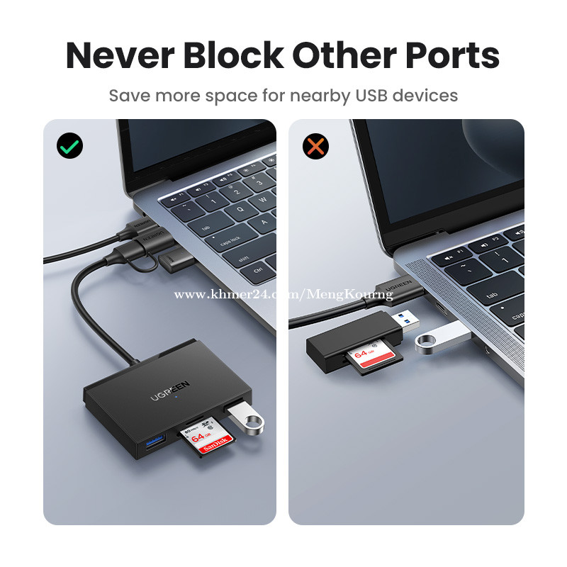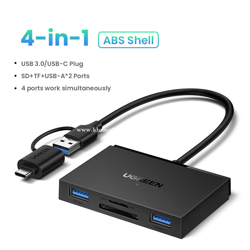 UGREEN USB-C3.0&USB-A3.0 Card Reader(SD+TF+2USB-A3.0) 45167 ✅ Input: 1×USB-C,1×USB-A ✅ Output: 1×SD Card Slot,1×TF Card Slot,2×USB-A ✅ USB: USB-A: Theoretical transfer rate of up to 5Gbps ✅ Card Reader: SD/TF Card Slots: Theoretical transfer rate of up to 170MB/s ✅ Support Memory Cards: SD/SDHC/SDXC;micro SD(TF)/micro SDHC/micro SDXC ✅ Compatible Systems:Windows/Linux/macOS 👍2 years warranty *This price not include delivery 🛒កម្ម៉ង់ឥឡូវនេះ 👇👇👇 ផ្នែកលក់ 012787xxxClick To Call https://t.me/cmksale1 Join ⏬ Telegram 🔔 https://t.me/+pMlYdQSBYkEyYTU1 ដើម្បីទទួលបាន ព័ត៌មានថ្មីៗ លម្អិត និងការផ្តល់ជូនពិសេសៗ ពីជួម៉េងគួងកុំព្យូទ័រ 🌐cmkcomputer.com 🌐https://www.facebook.com/MengKourngComputer 🌐https://www.facebook.com/cambodiafantech