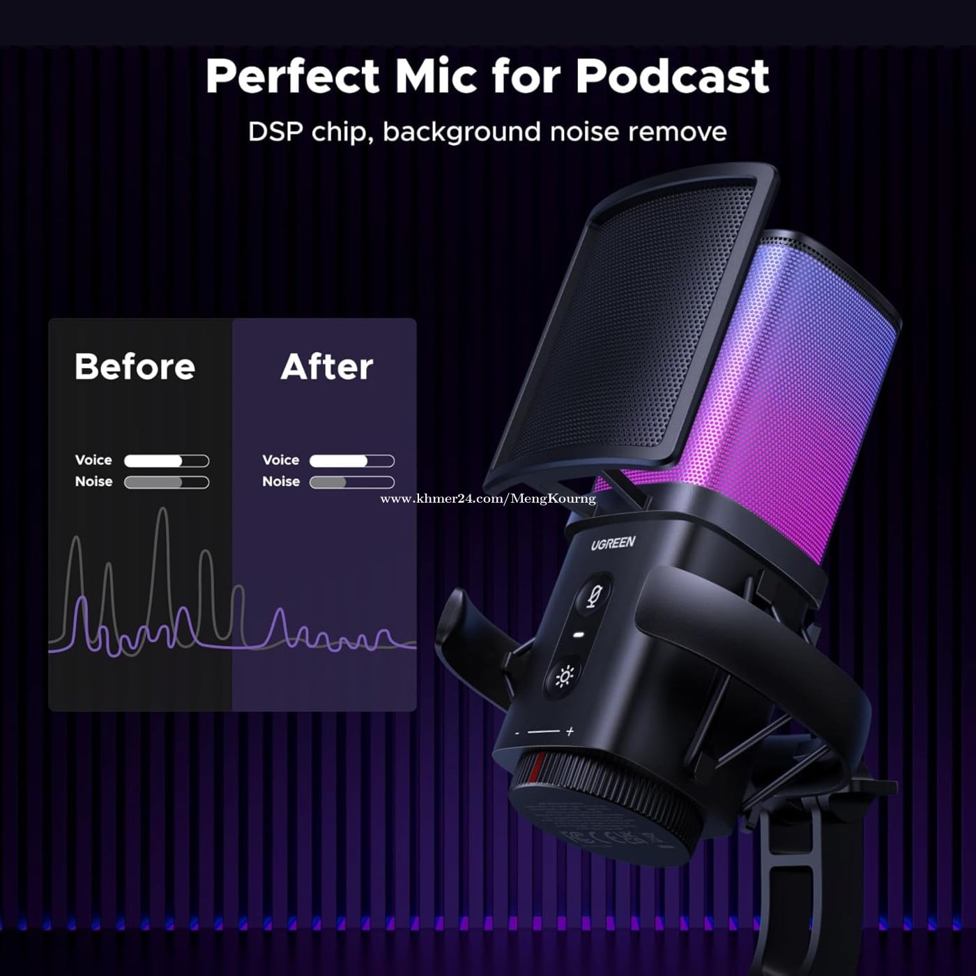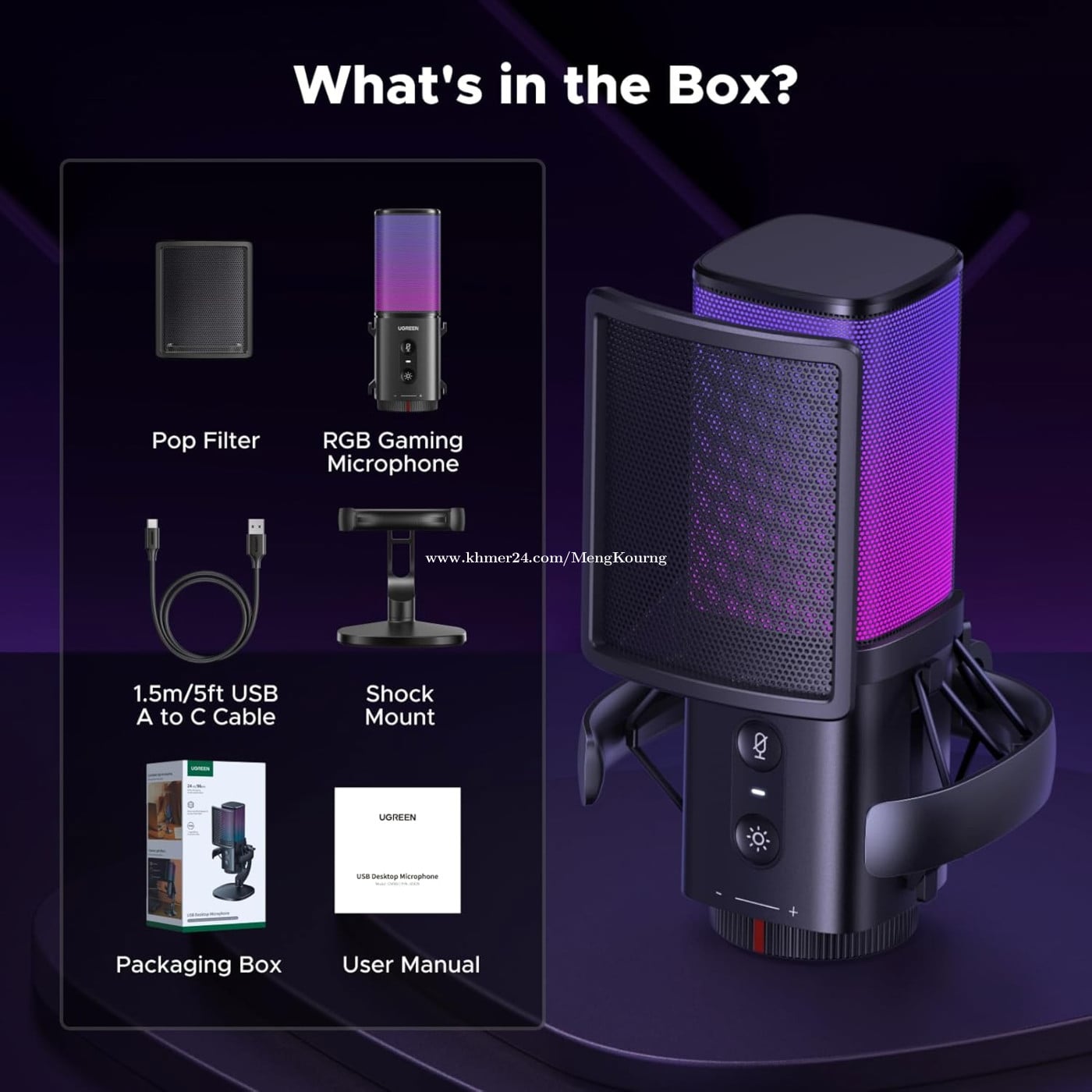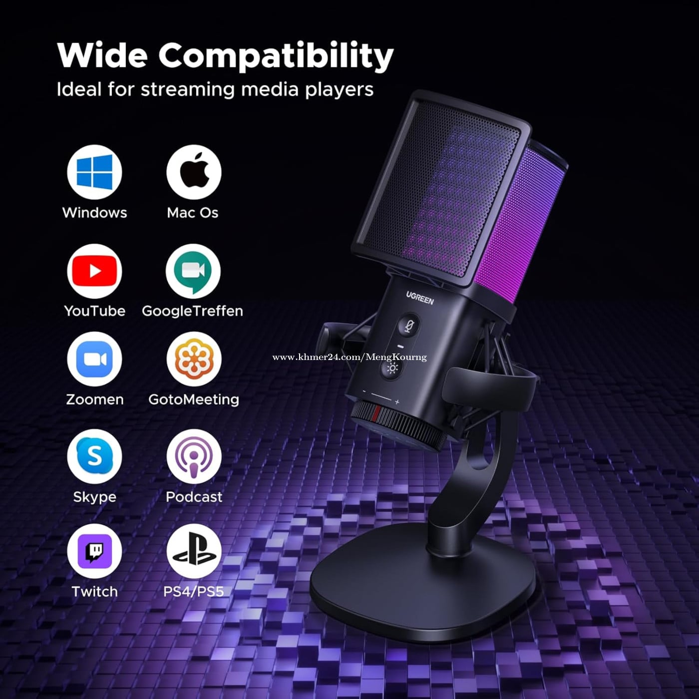 UGREEN USB Desktop Microphone 65629 *Audio Sampling Rate:24-bit/96kHz Max *Noise-control Mode:ANS noise cancellation *Pickup Pattern:Cardioid *Frequency Response:20Hz-20kHz *Output Port:3.5mm audio *Input Port:USB-C *Compatible Systems:Windows/macOS/Linux/Android/iPadOS/iOS *The data are measured by UGREEN lab but may vary based on specific circumstances. *តម្លៃនេះមិនបូករួមសេវាដឹកជញ្ជូន *This price not include delivery 🛒កម្ម៉ង់ឥឡូវនេះ 👇👇👇 ផ្នែកលក់ 012787xxxClick To Call https://t.me/cmksale1 Join ⏬ Telegram 🔔 https://t.me/+pMlYdQSBYkEyYTU1 ដើម្បីទទួលបាន ព័ត៌មានថ្មីៗ លម្អិត និងការផ្តល់ជូនពិសេសៗ ពីជួម៉េងគួងកុំព្យូទ័រ 🌐cmkcomputer.com 🌐https://www.facebook.com/MengKourngComputer 🌐https://www.facebook.com/cambodiafantech