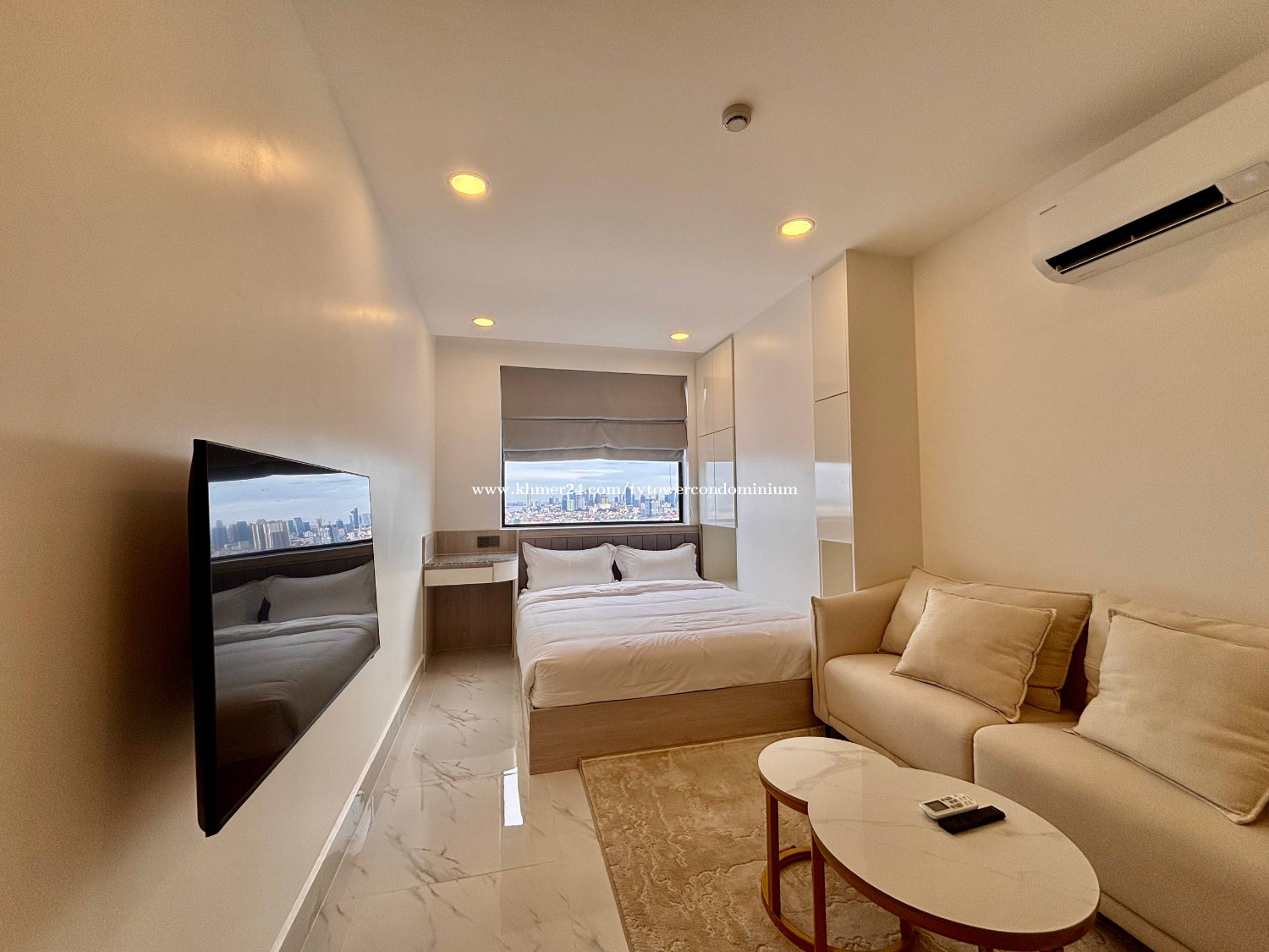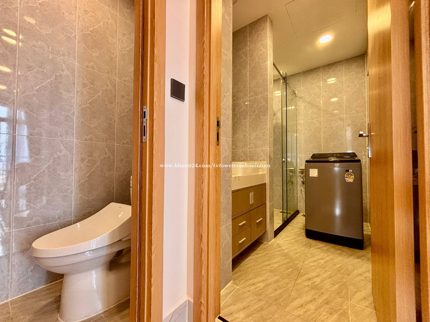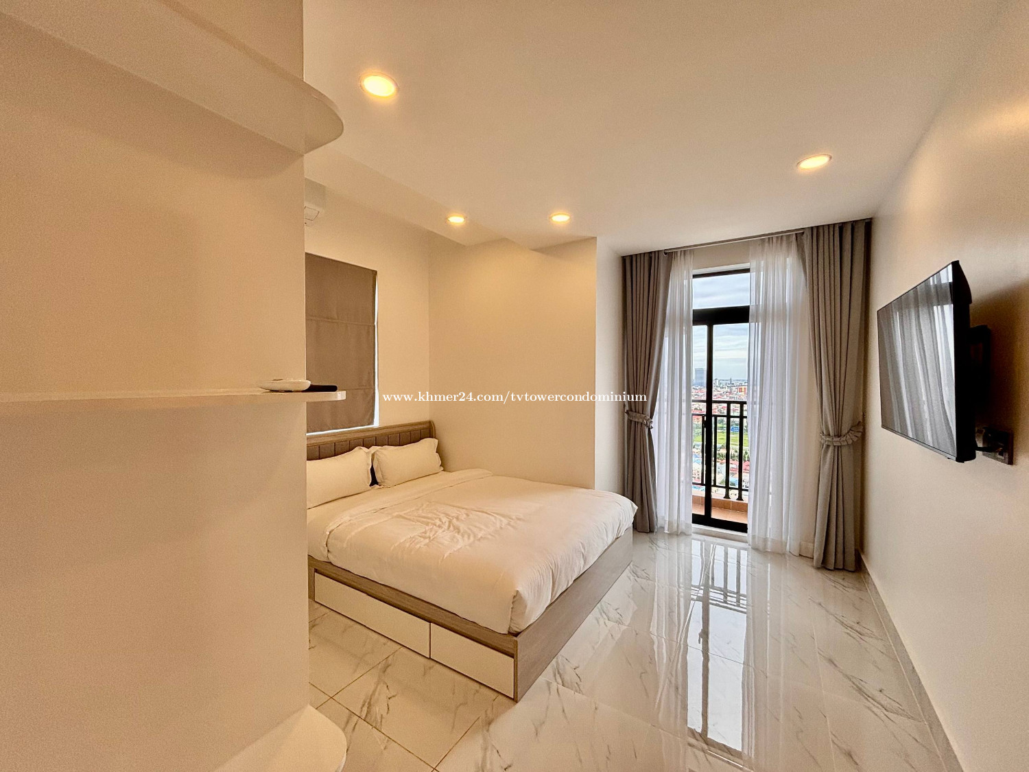 Unit 2 bedrooms Corner is available for rent at TV-Tower1 on 26th Floor (Negotiate Price) - 2 Bedroom - 1 Bathroom - Fully equipment - Parking - 77 sqm Facilities: • Modern Amenities • Cafe and Mini-mart • Laundry service • Sky Bar and Sky Garden • Gym • Swimming Pool • 24h Security
