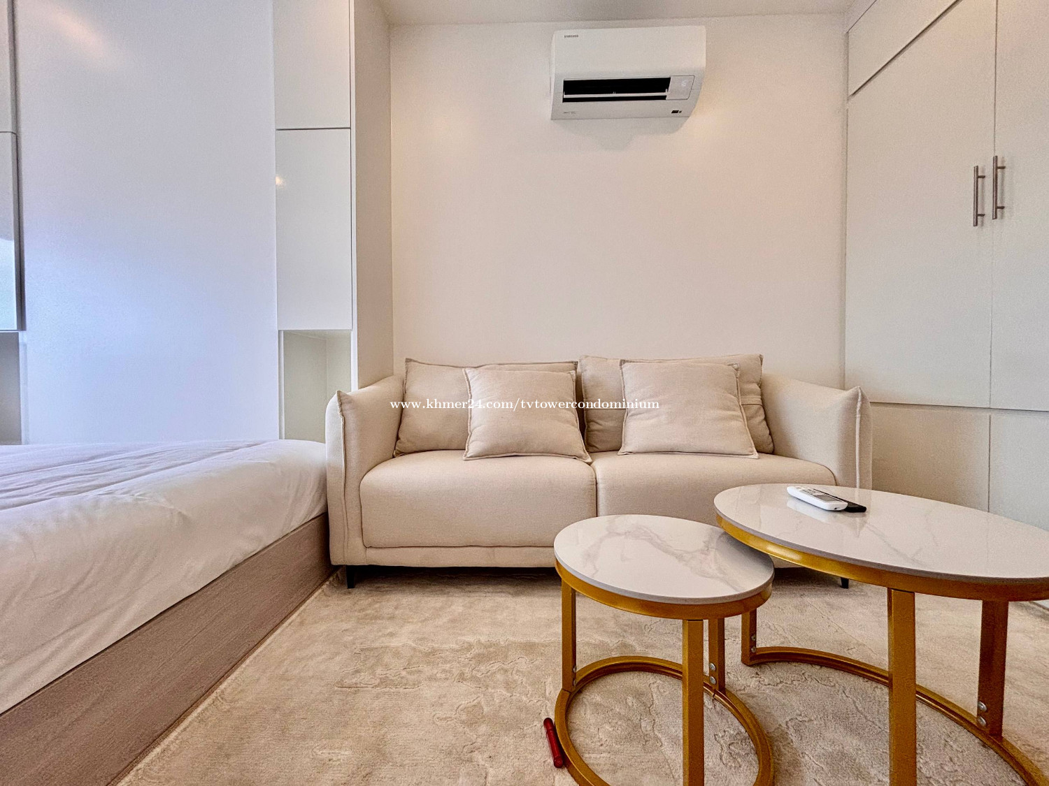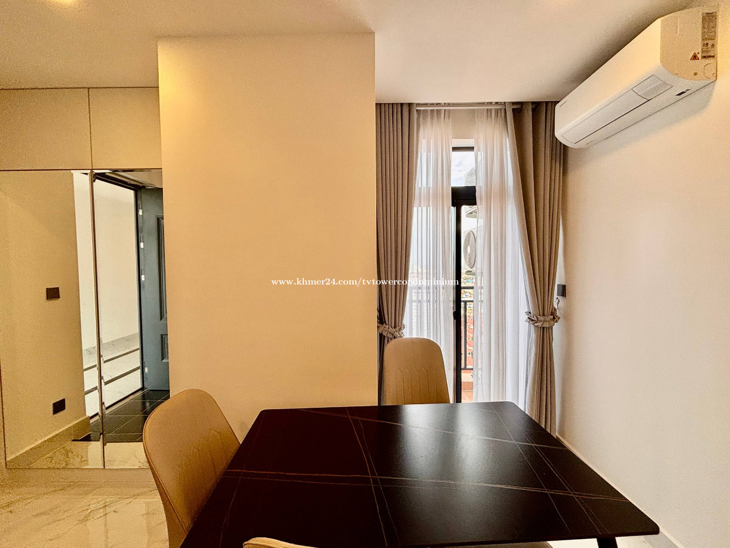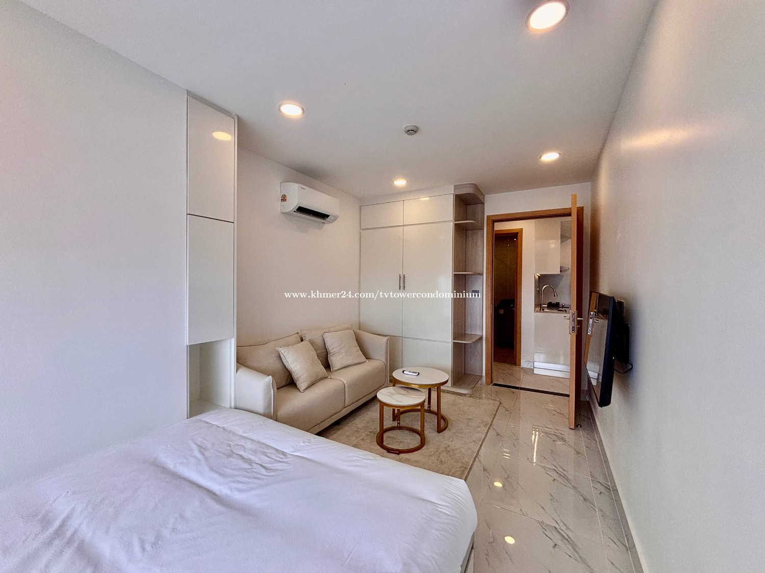 Unit 2 bedrooms Corner is available for rent at TV-Tower1 on 26th Floor (Negotiate Price) - 2 Bedroom - 1 Bathroom - Fully equipment - Parking - 77 sqm Facilities: • Modern Amenities • Cafe and Mini-mart • Laundry service • Sky Bar and Sky Garden • Gym • Swimming Pool • 24h Security