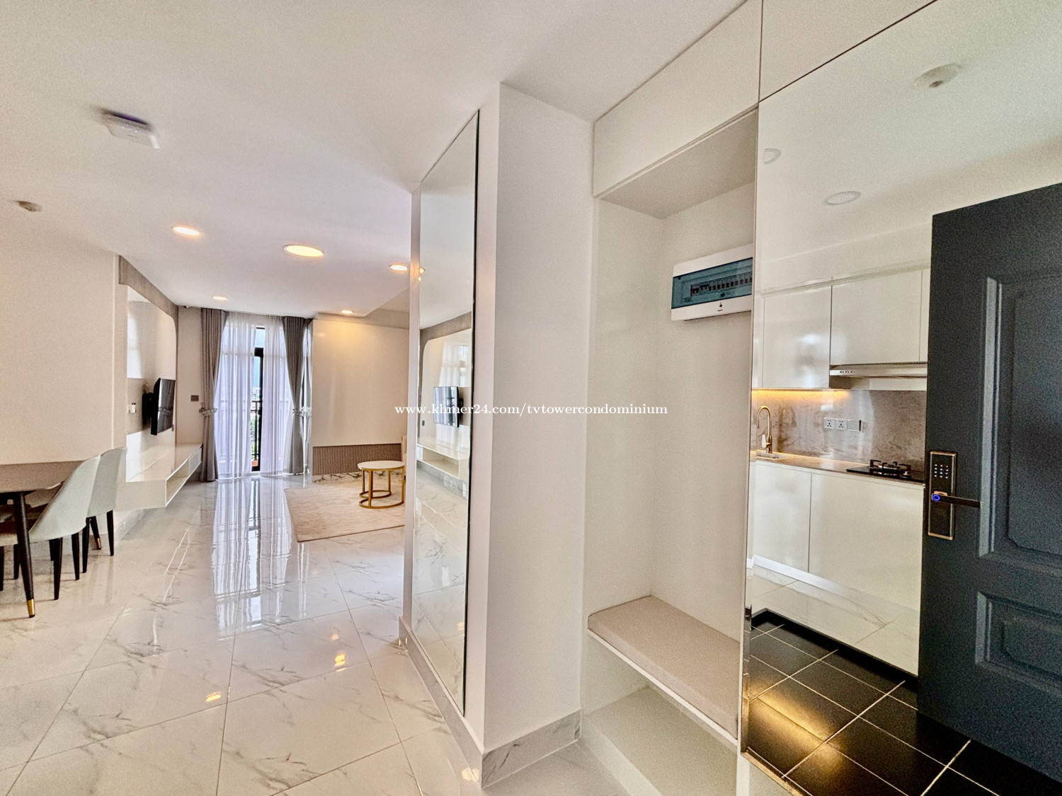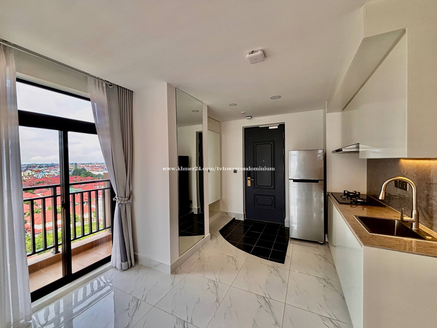 Unit One bedroom Corner is available for rent at TV-Tower1 (Negotiate Price) - 1 Bedroom - 1 Bathroom - Fully equipment - Parking - 77 sqm Facilities: • Modern Amenities • Cafe and Mini-mart • Laundry service • Sky Bar and Sky Garden • Gym • Swimming Pool • 24h Security