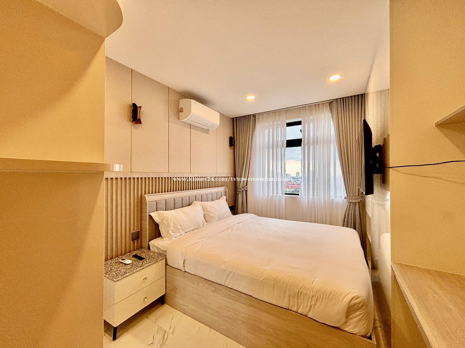 Unit One bedroom is available for rent at TV-Tower1on 17th floor (Negotiate Price) - 1 Bedroom - 1 Bedroom - 1 Bathroom - Fully equipment - Parking - 77 sqm Facilities: • Modern Amenities • Cafe and Mini-mart • Laundry service • Sky Bar and Sky Garden • Gym • Swimming Pool • 24h Security