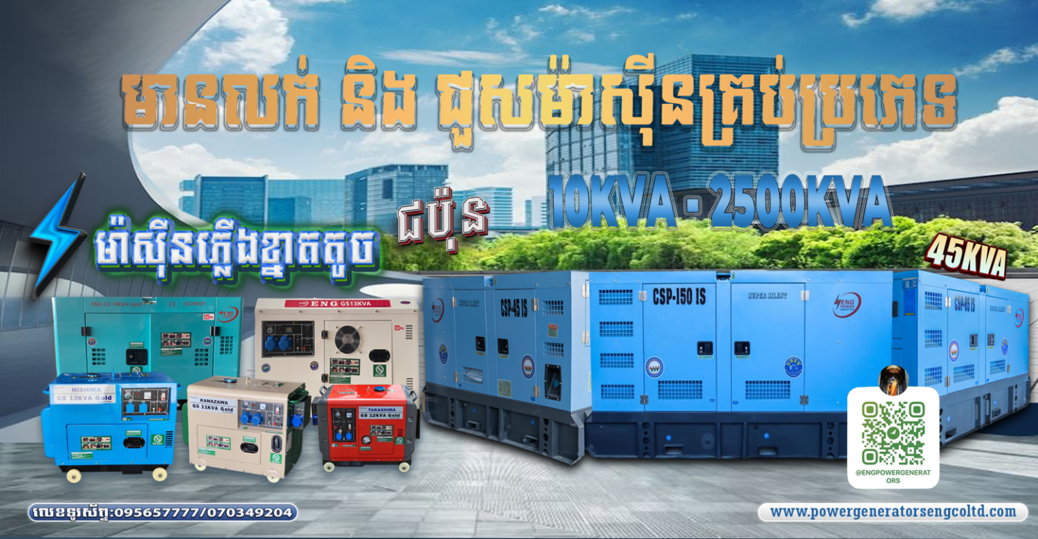 9ម៉ាស៊ីនភ្លើងខ្នាត ធំ កម្លាំង 800KVA មានទាំង ថ្មី និង មួយទឹក15, Oct 2025 • Dangkao, Phnom Penh .Negotiable