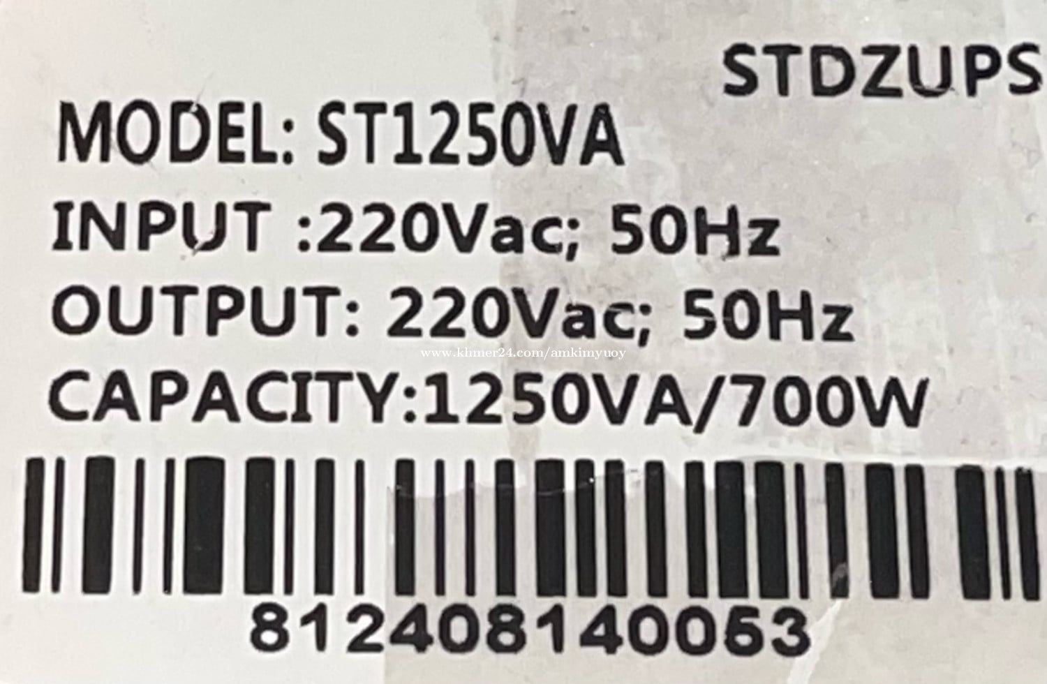 UPS 1250 VA Input: 220 50Hz Output: 220 50Hz Capacity: 1250VA/700W