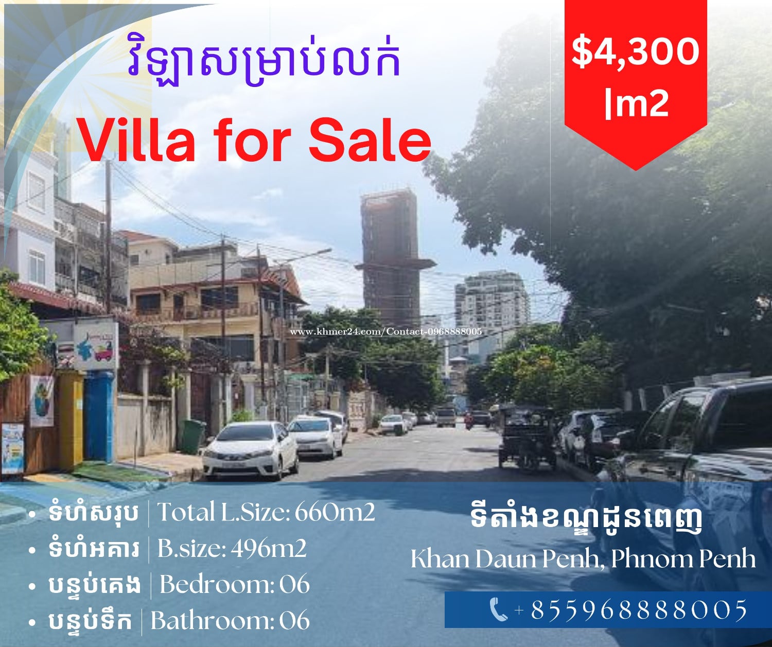 ๐๏ธ URGENT SALE | Grand 6-Bedroom Villa | Prime Daun Penh District ๐ฐ Pricing & Land Details - Asking Price: $4,000 / sqm (Negotiable for serious buyers) - Total Land Size: 660 sqm (Hard Title) - Total Villa Size: 496 sqm of built space - Total Property Value: ๐ก Villa Specifications - Bedrooms: 6 - Bathrooms: 6 Floors: This large build size suggests a spacious 2 or 3-story villa. An exceptional opportunity to own a significant property in one of Phnom Penh's most central and prestigious districts. Priced for an urgent sale. ๐ Contact for Serious Inquiries Brother Property Service Click Here Telegram: https://t.me/Brother0968888005