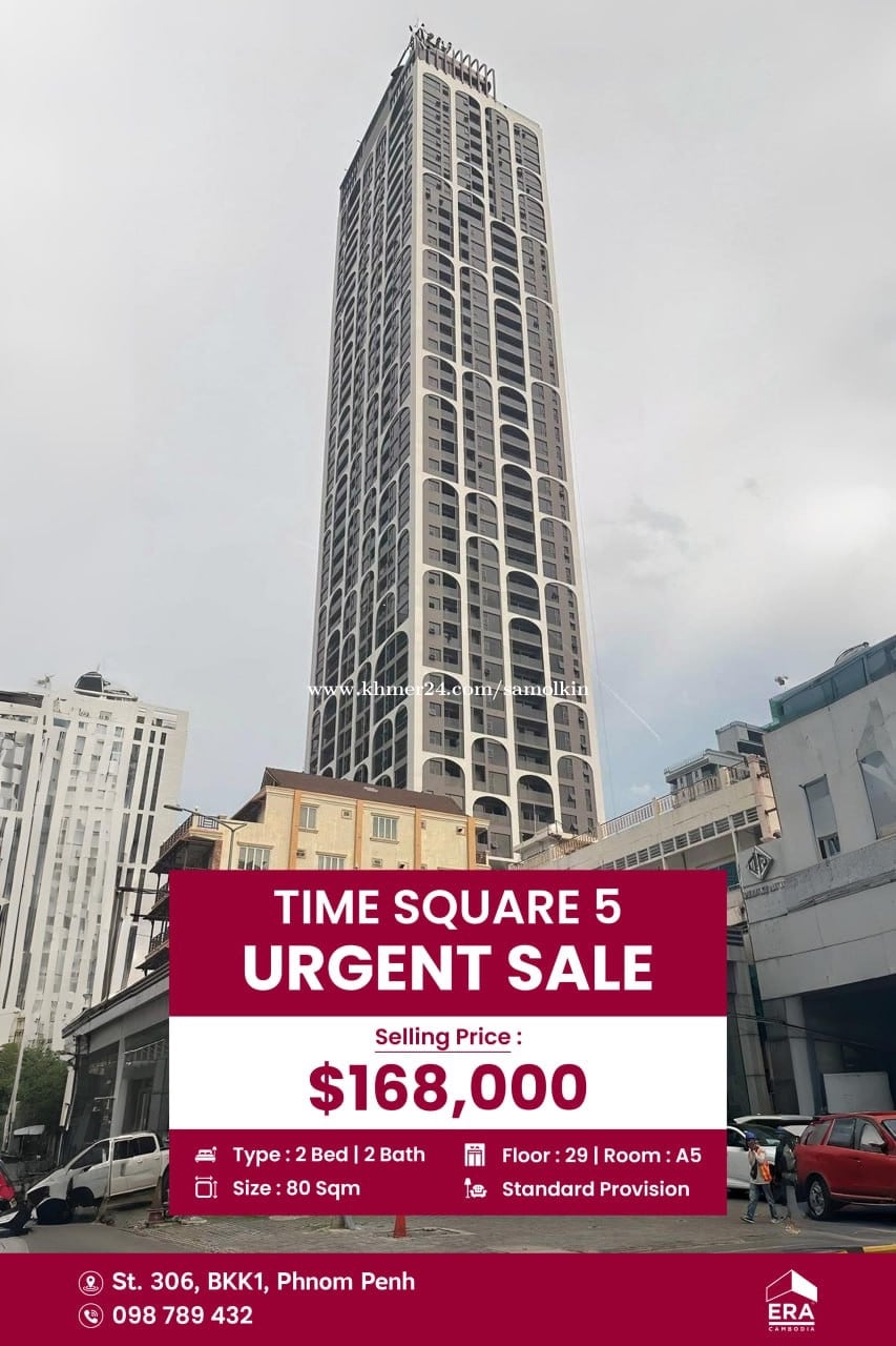 #UrgentSale - Time Square 5 - BKK1๐ฅ โ Handover End of December 2025 โ Type: 2 Bedroom | 2 Bath โ Floor: 29 | Unit: A5 โ Size: 80 sqm โ Standard Provision โ Now Price: $168,000 ๐ Location: St. 306, BKK1, Phnom Penh โ๏ธ Tel: +8556153xxxClick To Call9/ +8559353xxxClick To Call9 ๐ง telegram : https://t.me/internalsaleteam