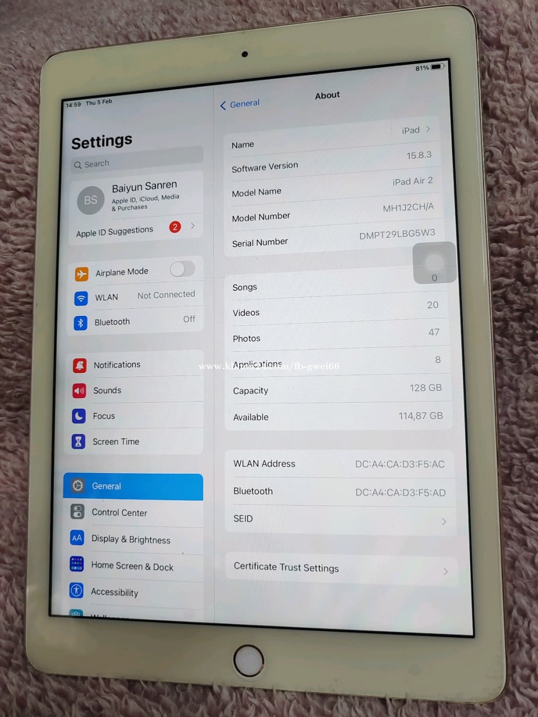 Personal use ipad Air2 WIFI 128G 95% Account can be logged out