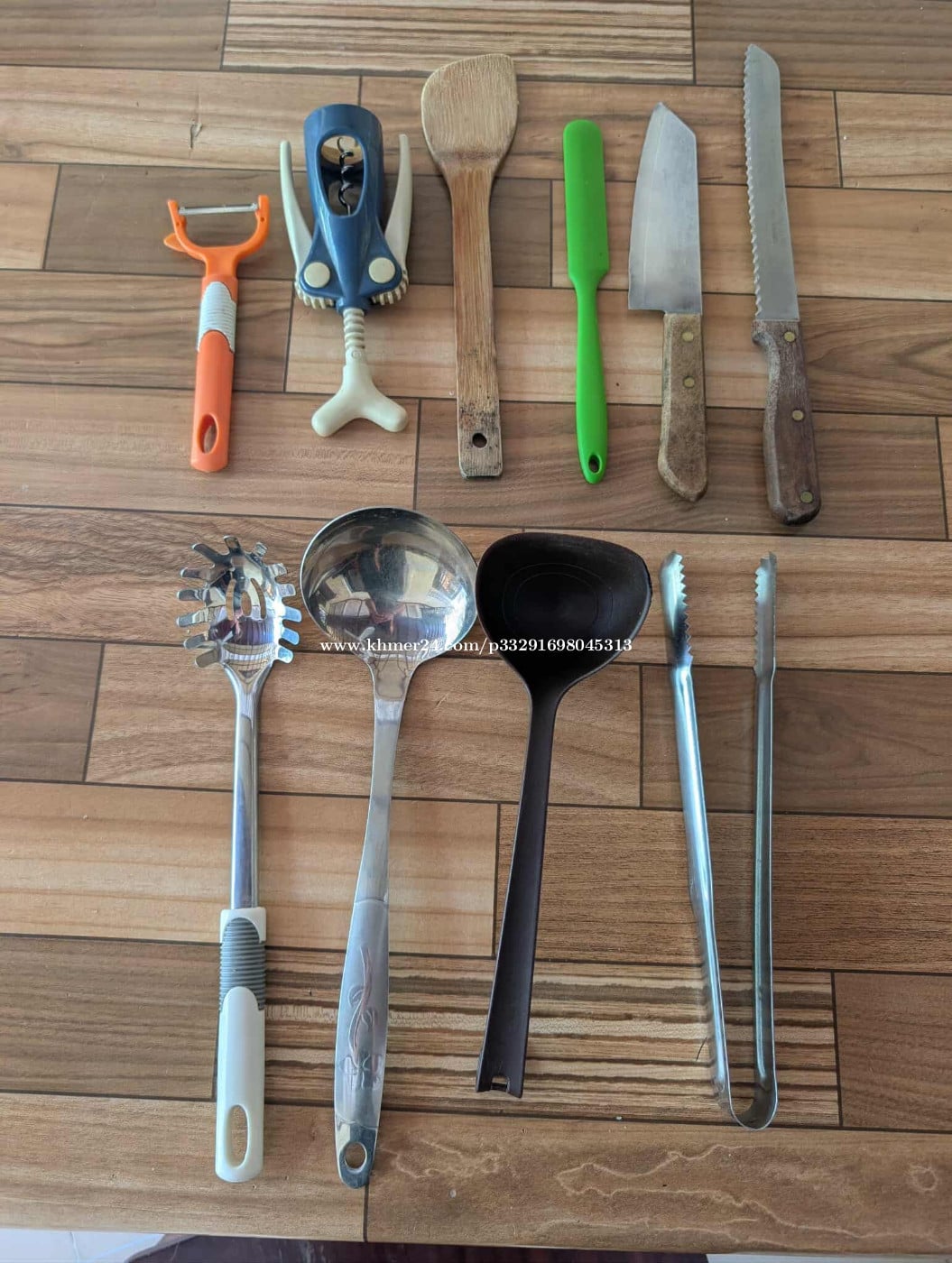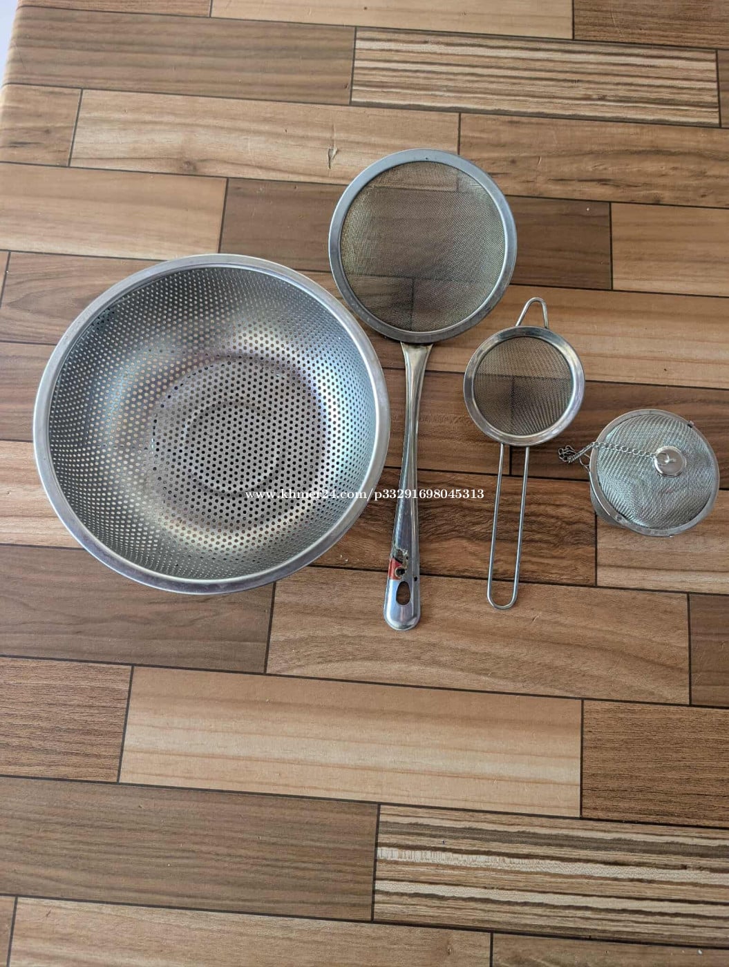 2 sets of glzed clay terrines (17cm) Colandersof different sizes Assorted kitchen utensils Price 10$