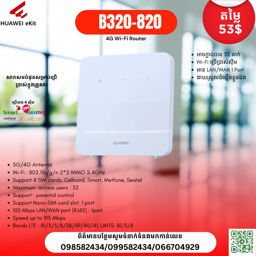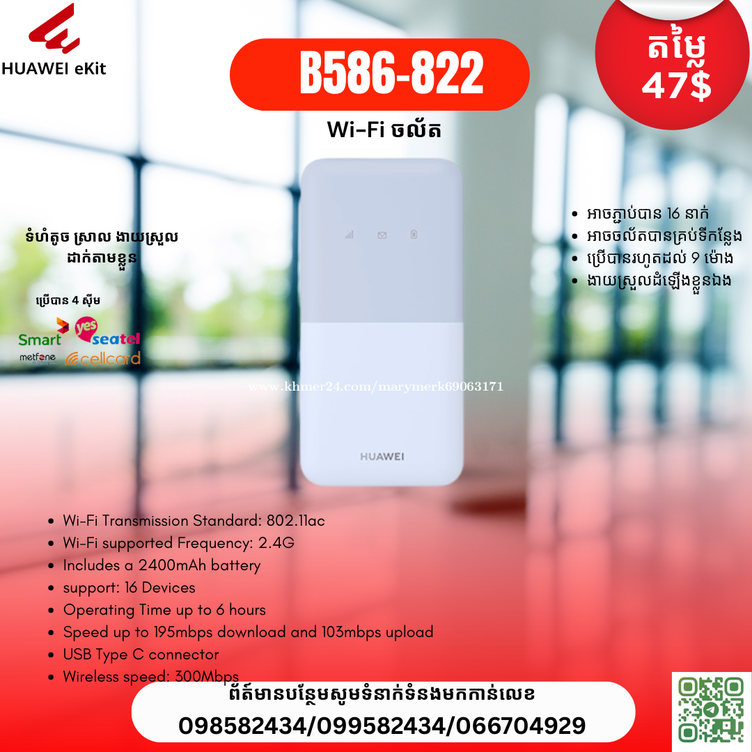 🙏សួស្តីអតិថិជនរបស់ក្រុមហ៊ុន Mary Technology ទាំងអស់គ្នា😊🙏🫱សម្រាប់ថ្ងៃនេះក្រុមហ៊ុនយើងខ្ញុំសូមណែនាំជាប្រភេទ WiFi ចល៍ត នឹង Home WiFi Brand HUAWEI គុណភាពល្អងាយស្រួលប្រើប្រាស់ មានច្រើនប្រភេទ👍 👉Model: E5586-822(Portable WiFi) 👉Model: B320-820(Router) 👉Model: B535-836(Router) 🙏 ព័ត៍មានបន្ថែមអាចទំនាក់ទំនង មកកាន់លេខខាងក្រោមនេះ ☎️098582xxxClick To Call ☎️099582xxxClick To Call ☎️066704xxxClick To Call 👉ចុចចូល Telegram: https://t.me/tata338713 👉Facebook Page: #MaryTechnologyCo.,Ltd 🗺សម្រាប់ទីតាំង https://goo.gl/maps/2ZAZ6Bb6P6jPUS58 ផ្ទះលេខ 20N ផ្លូវលេខ K4B សង្កាត់ទឹកថ្លា ខណ្ឌសែនសុខ ភ្នំពេញ #Network #Woori #bank #MaryTechnology #HIKVISON #Cambodai #Wooribankcambodai