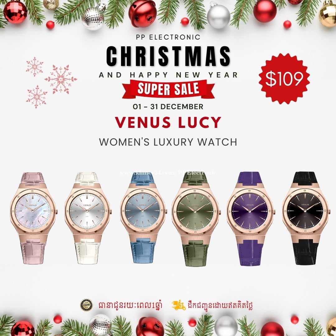 Venus Lucy ជានាឡិកានារីដែលរំលេចរូបរាងមកប្រកបដោយប្រណិតភាព និង ភាពថ្លៃថ្នូ ជាមួយតួខ្លួនលោហៈភ្លឺចាំងសុីនឹងខ្សែស្បែកដ៏ទាក់ភ្នែក ពិតជាស័ក្តិសមបំផុតសម្រាប់យុវនារីគ្រប់រូបក្នុងពេលបច្ចុប្បន្ន មិនថាពាក់ចូលរួមកម្មវិធី រឺ ទៅធ្វើការ venus lucy ផ្តល់នូវទំនុកចិត្តគ្រប់ពេលវេលាគ្រប់ទីកន្លែង 🥰 មាន 6 ពណ៌សម្រាប់ជ្រើសរើស ៖ 🤍 🩷 💙 💚 💜 🖤 💲បញ្ជាទិញឥឡូវនេះដើម្បីទទួលបានតម្លៃពិសេស 🛵ដឹកជញ្ជូនដោយឥតគិតថ្លៃទូទាំងប្រទេស 🛡 ធានារយៈពេល 1 ឆ្នាំ 🔘លក្ខណៈពិសេស៖ ☑️ម៉ាសុីនស្តង់ដាជប៉ុនរបស់ក្រុមហ៊ុន Citizen ☑️តួខ្លួន Stanless Steel 316L មិនច្រះ មិនស្នឹម ☑️កញ្ចក់ Sapphire Crystals ☑️ខ្សែជាប្រភេទខ្សែស្បែកសុទ្ធ 100 % ☑️ប្រព័ន្ធការពារជម្រាបទឹក 5 ATM អាចពាក់ចុះទឹកបានជម្រៅរហូតដល់ 50 ម៉ែត្រ