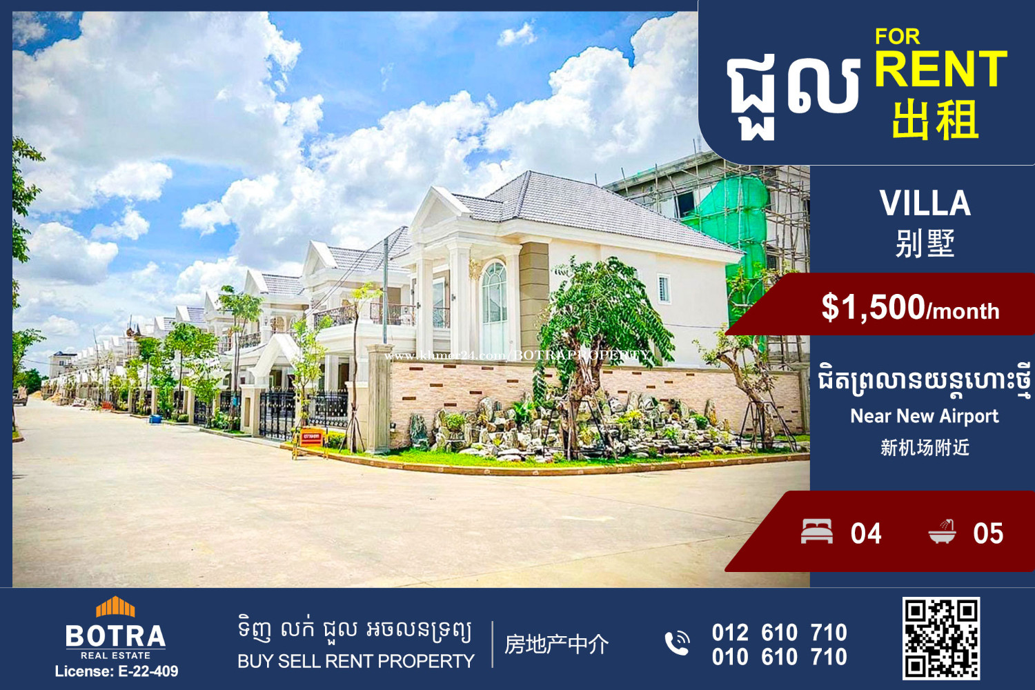 Vila for Rent Near New Airport • 4 bedrooms | 5 bathrooms • Price: $1,500/month (nego) ————————— Contact us now 📞 012610xxxClick To Call (Cellcard) 📞 010610xxxClick To Call (Smart) ▶️ t.me/BotraRealEstate (Chat)