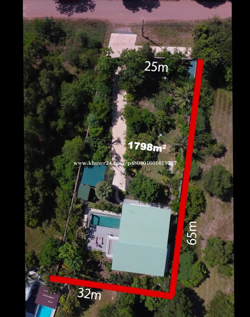 _______________________________ AVAILABLE FROM FEBRUARY 2026 _______________________________ Price Negotiable On Individual Basis • Bedroom :3 Bathroom :2 Facing :West Size :1798m² Type :Villa ដ្រូនវីដេអូ / Drone Video —> https://vimeo.com/1089634188/148f251e0b • [ English Information Below ] • • ទំហំដី 1,798 ㎡ • ទំហំផ្ទះ 8m x 14m (2 ជាន់) • អាងហែលទឹក 3m x 9m • •• ជាន់ក្រោម • បន្ទប់គេង 2 (4m x 4m) • បន្ទប់ទឹក 1 • បន្ទប់ដាក់អីវ៉ាន់ • បន្ទប់ទទួលភ្ញៀវ / ចង្ក្រានបាយ • •• ជាន់ទី1 • បន្ទប់គេង ទំហំ 55㎡ • បន្ទប់ទឹក ជាមួយនិង បន្ទប់ស្ទីម • បន្ទប់អង្គុយលង និងបន្ទប់ហាត់ប្រាណ • បន្ទប់ដាក់អីវ៉ាន់ • •• ខាងក្រៅផ្ទះ • រោងឡាន 1 • កន្លែងងូតទឹក • ដីមានរបងស៊ីម៉ង់ជំវិញ មានដើមឈើហូបផ្លែជាច្រើនដើម • [ សូមធ្វើការណាត់ទុកមុនសម្រាប់មើលផ្ទះ ] • ពត៍មានបន្ថែម ខ្មែរ : 015556xxxClick To Call អង់គ្លេស : 0965748xxxClick To Call • Veal Pouch Road, Andoug Khmer, Kampot • Hard Title : 1,798m² Inside House : 224m² (8m x 14m x 2 level) Build Complete : 2023 Fully Furnished • [ Viewing By Appointment Only ] • Enclose By Concrete Wall & Gate Concreted Drive Large Jungle Garden Many Fruit Trees - Young Food Forest Double Garage Salt Water Pool (Approx (W)3m x (L)9m x (D)1.5m) • Open Plan Kitchen / Lounge Utility Room Shower & Toilet Room 2 x Bedrooms (4m x 4m) • Large Bedroom 55m² Large Bathroom 25m² Steam Room, Bath, Shower, Double Sink Large Solarium Lounge & Gym Room 32m² Small Hidden Room Outside Balcony +25m² • Metal Spiral Staircase Large Covered Concrete Roof 112m² • Deposit : 3 Months Minimum Term : 12 Months Tenant To Pay Government Bills (Water & Electric) Wifi, Trash Collection, Gardener & Pool Maintenance Included In Price