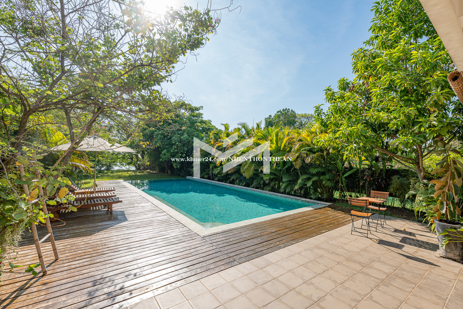 Located in Prek Dong Village, Kom Pong Svay Commune, Kien Svay District, Kandal Province, this beautiful riverfront property offers a serene escape just 24 km from Aeon 3 and 16 km from Takmao City—only a 30–40 minute drive from Phnom Penh. Set along the peaceful Bassac River, the property is in good condition, surrounded by greenery, and ideal for use as a weekend home or holiday retreat. With its tranquil atmosphere and easy access from the city, it’s a perfect getaway for those seeking peace and nature close to town.