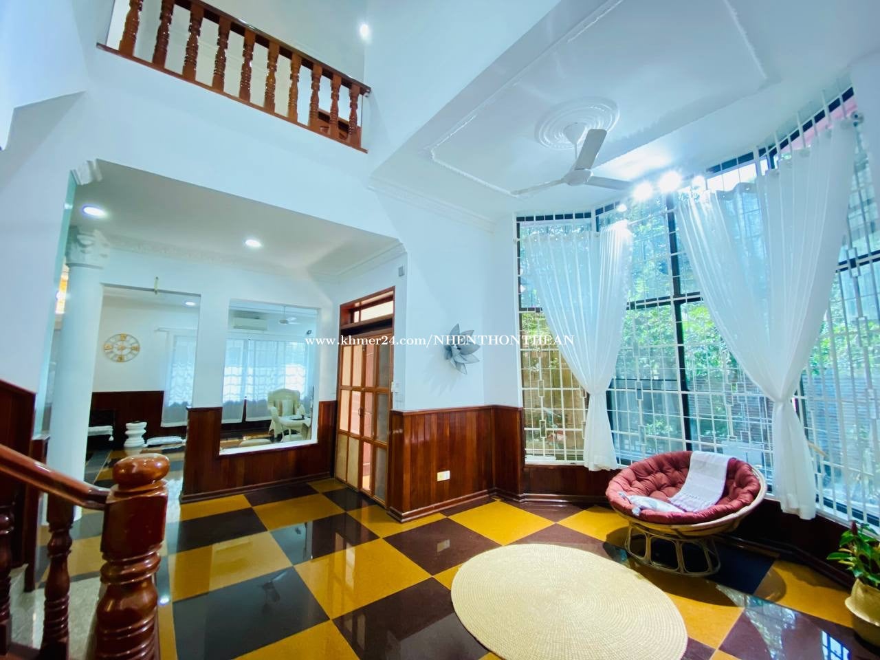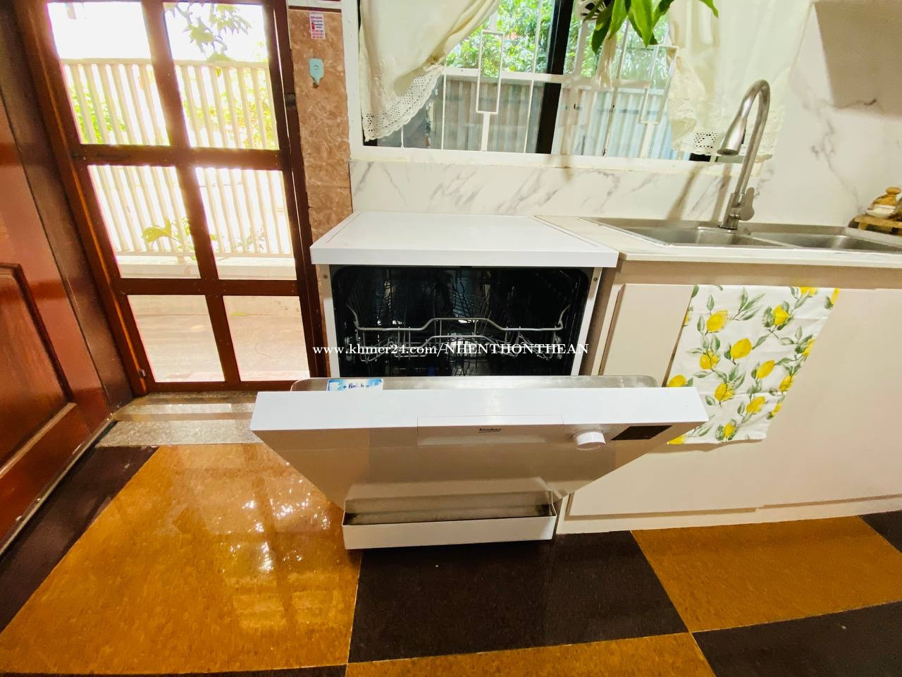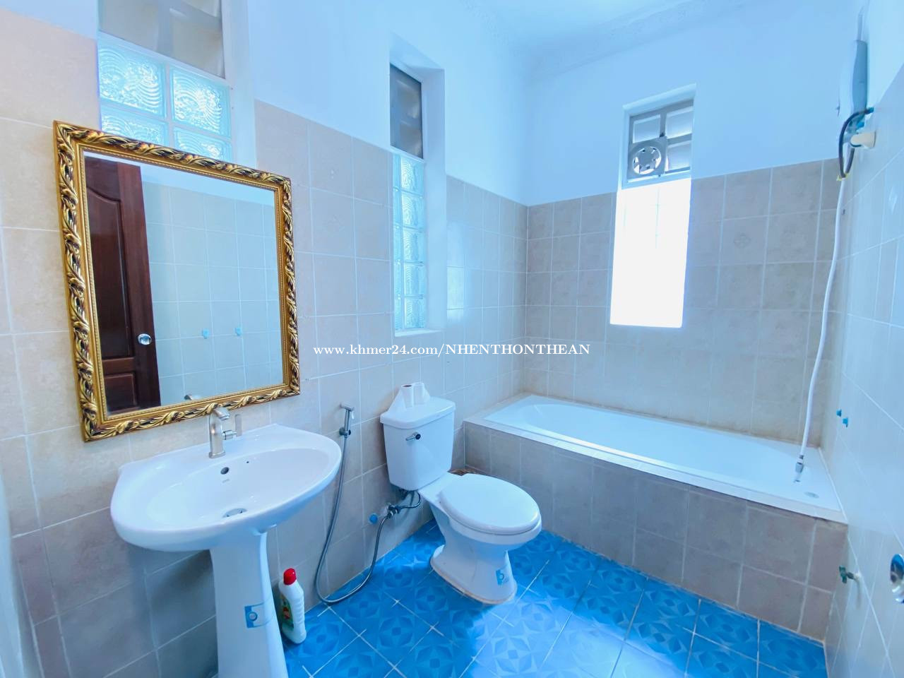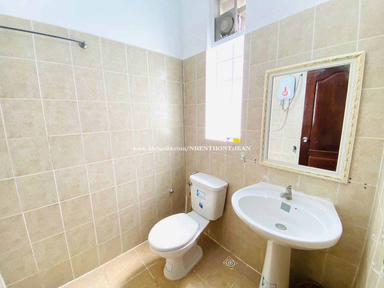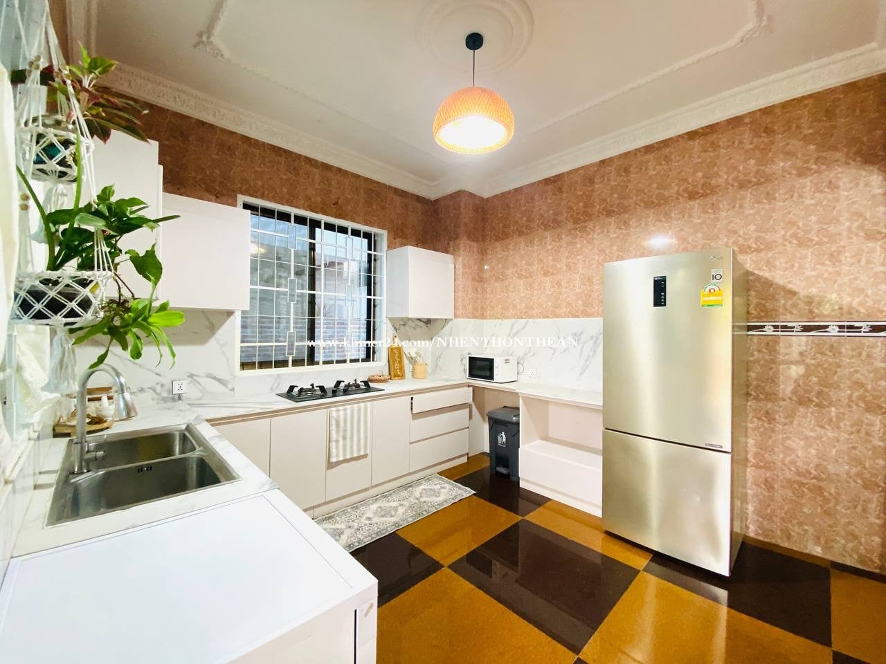 Charming And Beautiful Villa With Wall brick Designed Villa Rent Now. ๐Location: Chroy Changva, 200m from Japanese Bridge, or five minutes from French Embassy. โข Rental Price: $1,200 Per Month โข Land Size: 15m x 18m โข Bedroom: 4 (3Regular+1Master Room with Double Bed) โข Bathrooms: 5 (all with hot water) โข Floor: Eo (1Room), E1: 3Room) , Separated Kitchen and Living room. โข Fully Furnished; Full set of bed, Rattan Safe, Real Wooden Wardrobe, Big Fridge, Washing Machine, A/C, Dish dryer, Microwave, Stovetop. โขโขโขAll windows are covered by mosquitoes nรฉt.
