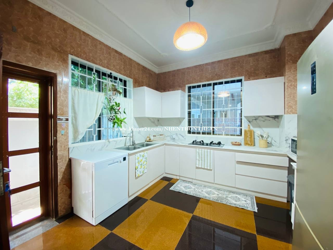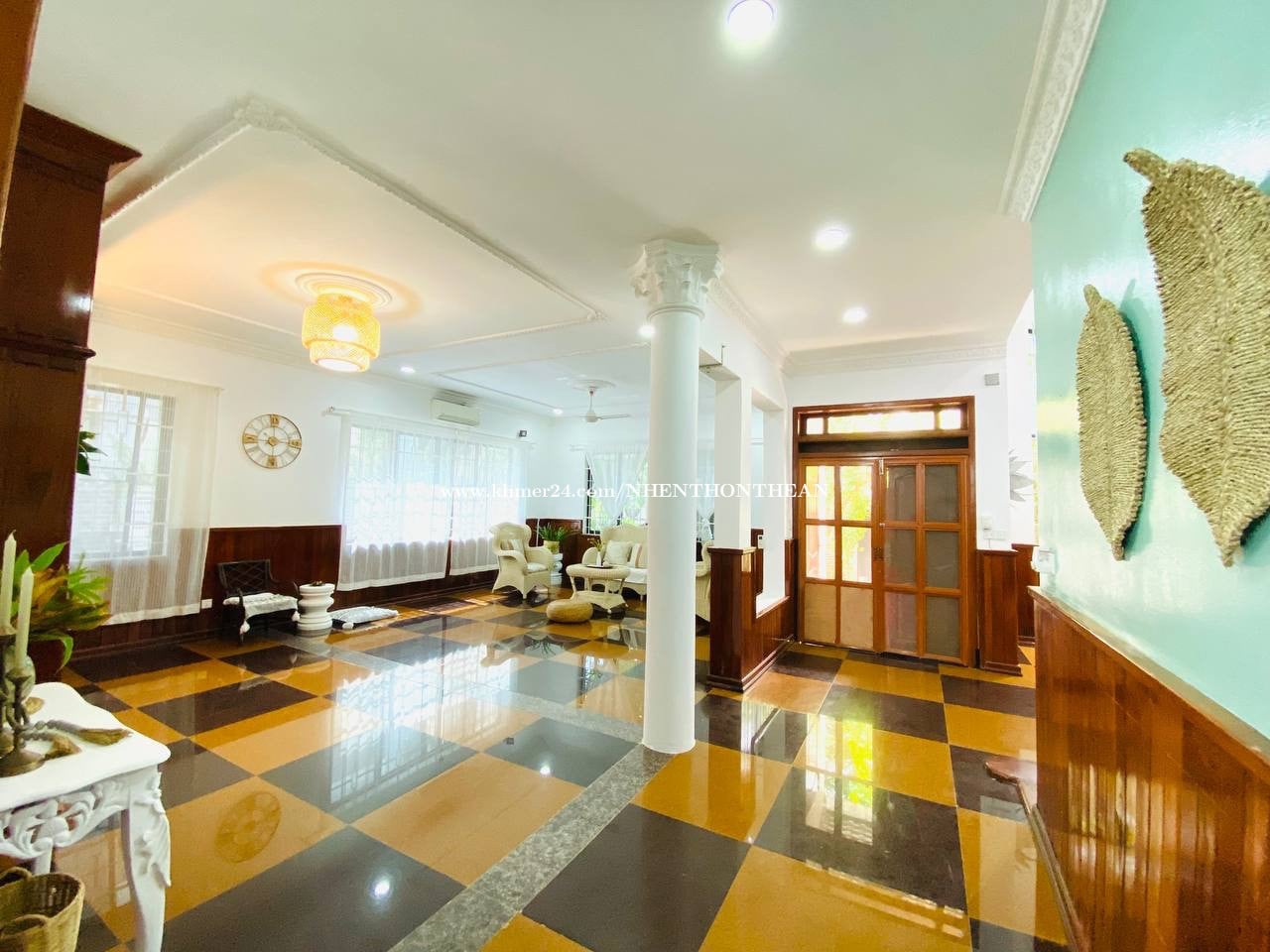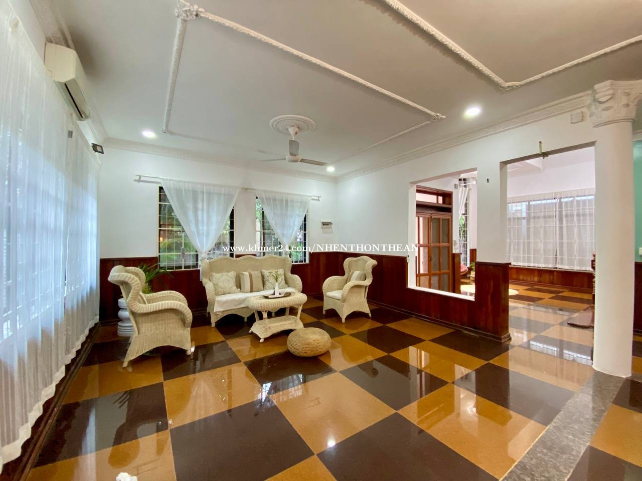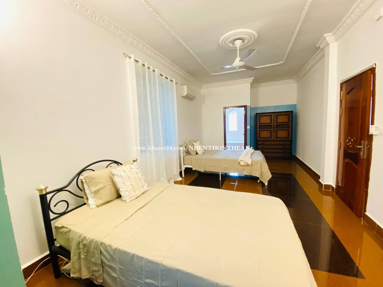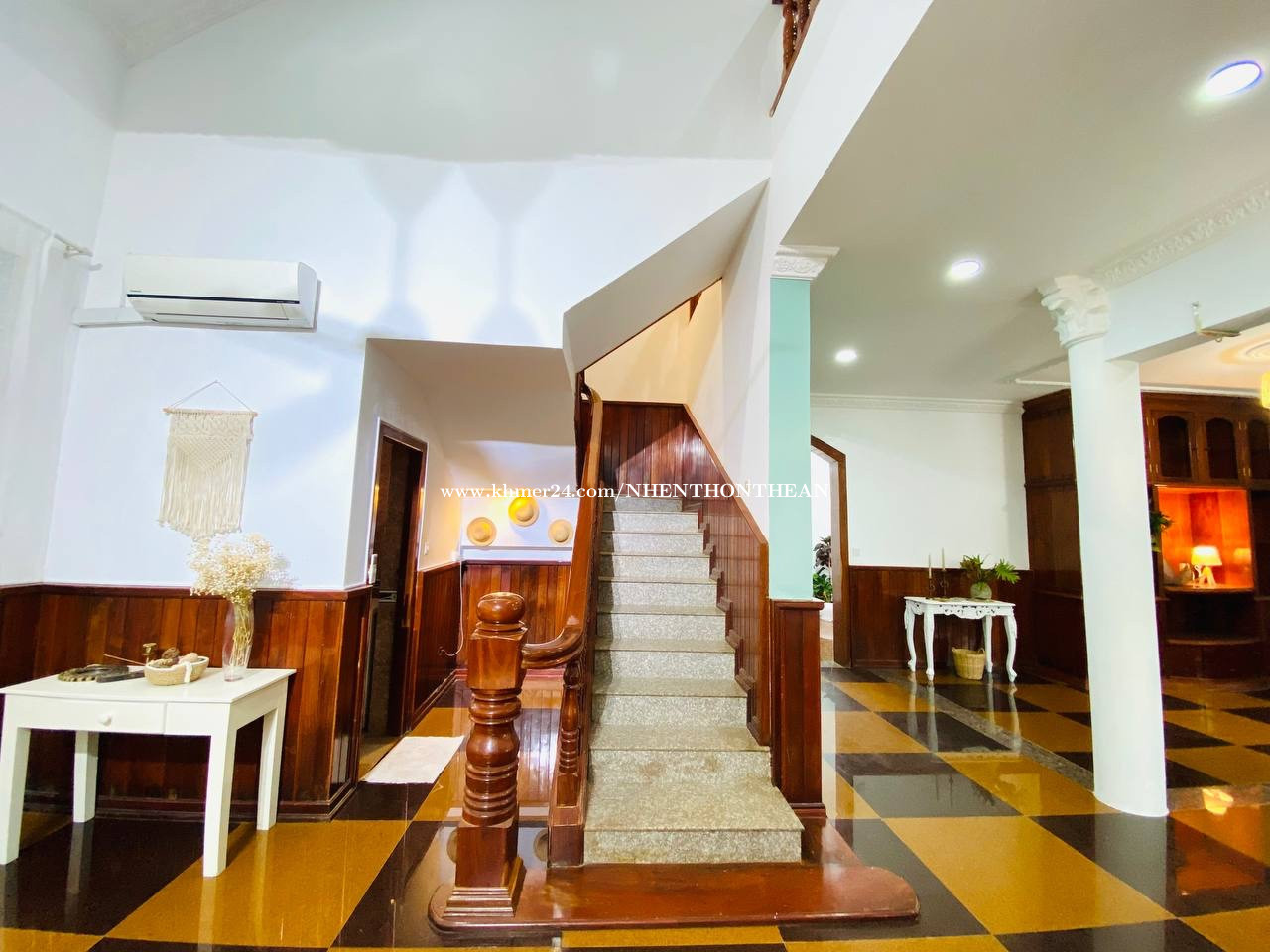 Charming And Beautiful Villa With Wall brick Designed Villa Rent Now. ๐Location: Chroy Changva, 200m from Japanese Bridge, or five minutes from French Embassy. โข Rental Price: $1,200 Per Month โข Land Size: 15m x 18m โข Bedroom: 4 (3Regular+1Master Room with Double Bed) โข Bathrooms: 5 (all with hot water) โข Floor: Eo (1Room), E1: 3Room) , Separated Kitchen and Living room. โข Fully Furnished; Full set of bed, Rattan Safe, Real Wooden Wardrobe, Big Fridge, Washing Machine, A/C, Dish dryer, Microwave, Stovetop. โขโขโขAll windows are covered by mosquitoes nรฉt.