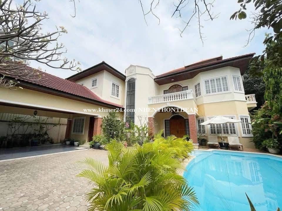 Villa 5 Bedrooms For Rent in Toul Kork With Swimming Pool. Price: $2300 per month Bedroom:05 Bathroom:06 Furniture: fully furnished Has swimming pool. Parking: 4 car up It is very good for living and office safe area no flooding.