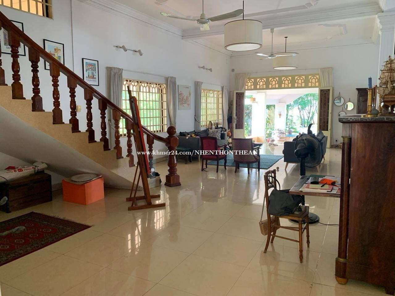 Villa For Rent At Chroy ChongVa with swimming pool. Land size: 18m x 50m House size: 9m x 20m Price: 2500$ per month negotiable Bedroom:04 plus 1 maid rooms Bathroom:05 Furniture some Private pool. It is very good for living and office safe area no flooding.